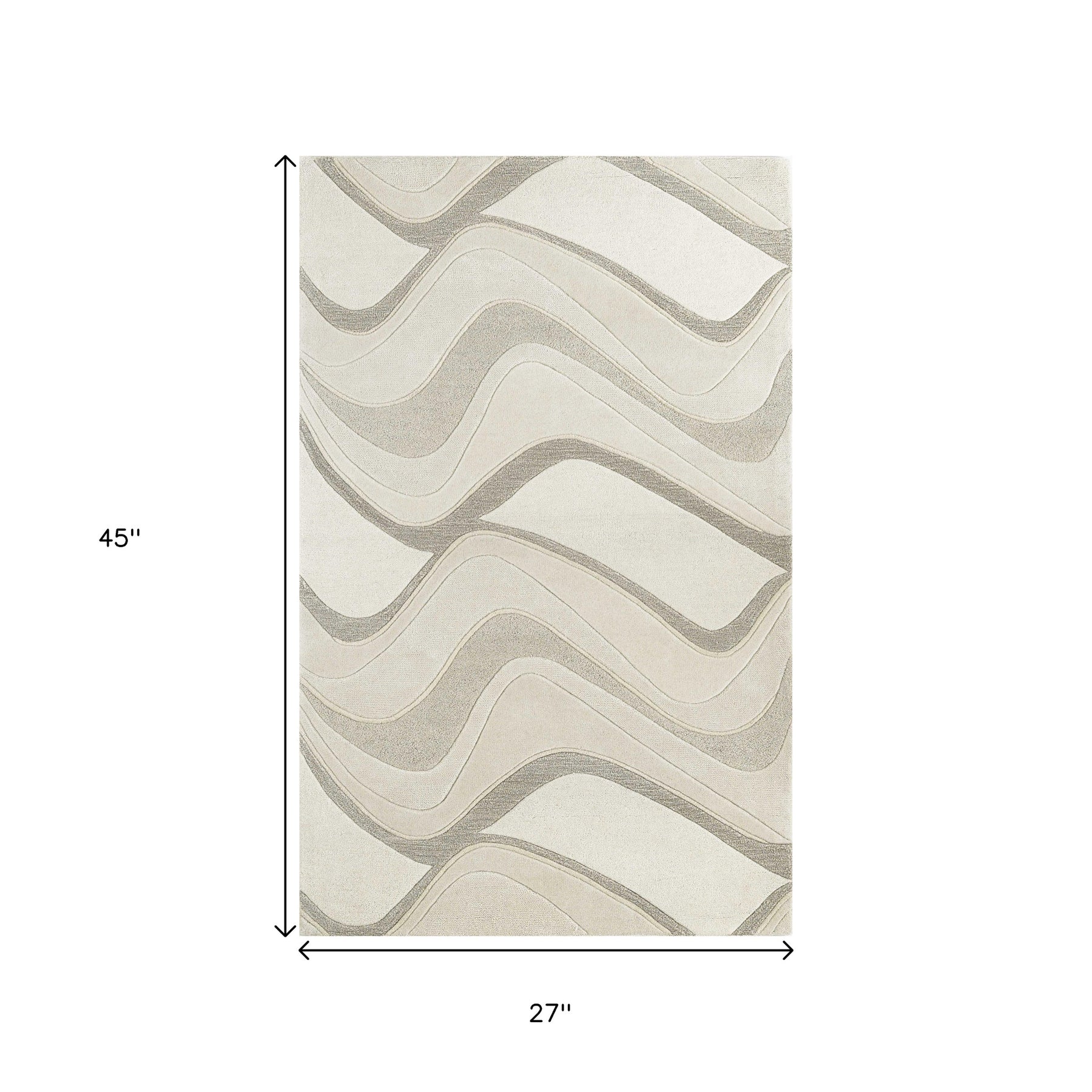 This 2-foot x 4-foot ivory and gray wool abstract hand tufted area rug, is a great way to add warmth to a room. Crafted by skilled artisans, this hand tufted rug is genuine and unique. No two will be exactly alike. Rugs are a great way to showcase your style, hide imperfections, warm your home and reduce noise. This smaller sized, contemporary styled rug is just what you need for your walkway, bedside, in front of door, cabinet, refrigerator, or chair. 27-inch h x 45-inch w x 0.5-inch d.