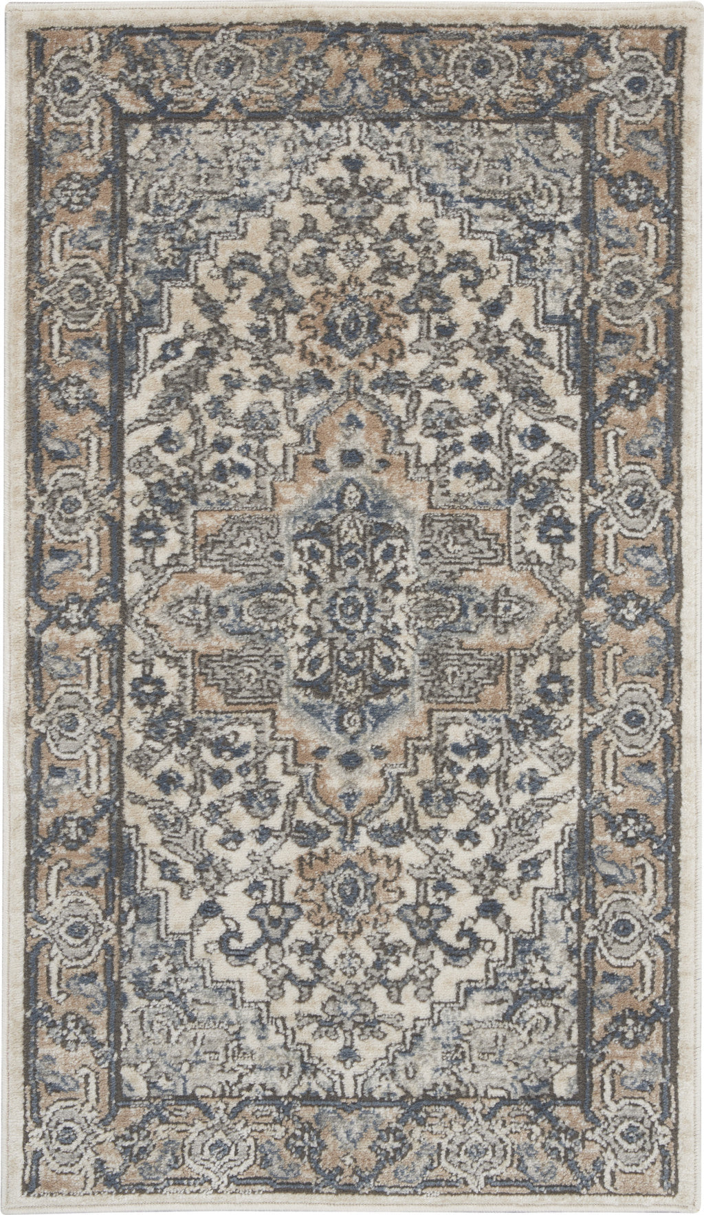 This 2' x 4' ivory and grey oriental non skid area rug, is a great way to add warmth to a room. Featuring oriental blocks in ivory and grey transitioning from deep tones to light ones to create a sense of warmth and depth to your living space. Made in Turkey, this rug offers high quality combined with good looking designer sensibilities. Place this area rug against a hardwood or tile floor and it will enliven your living space with style and sophistication. .32" H x 26.00" W x 45.00" D