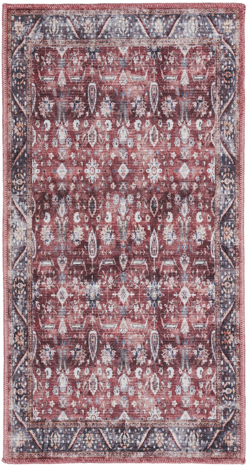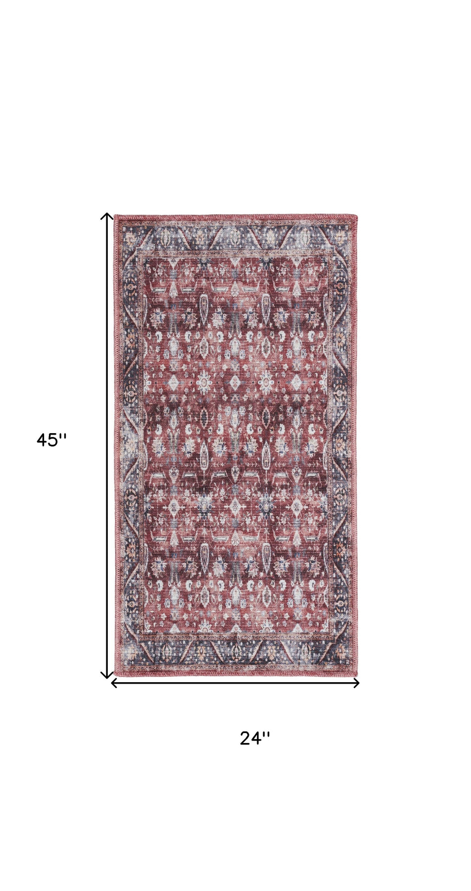 This 2-foot x 4-foot red and ivory floral power loom distressed washable non skid area rug, is a great way to add warmth to a room. This rectangle shaped rug features a floral design in red and ivory to give it visual interest. A classic shape marries with good looking design for your space place this area rug against a hardwood or tile floor and it will enliven your living space with style and sophistication. 24-inch H x 45-inch W x 0.25-inch D