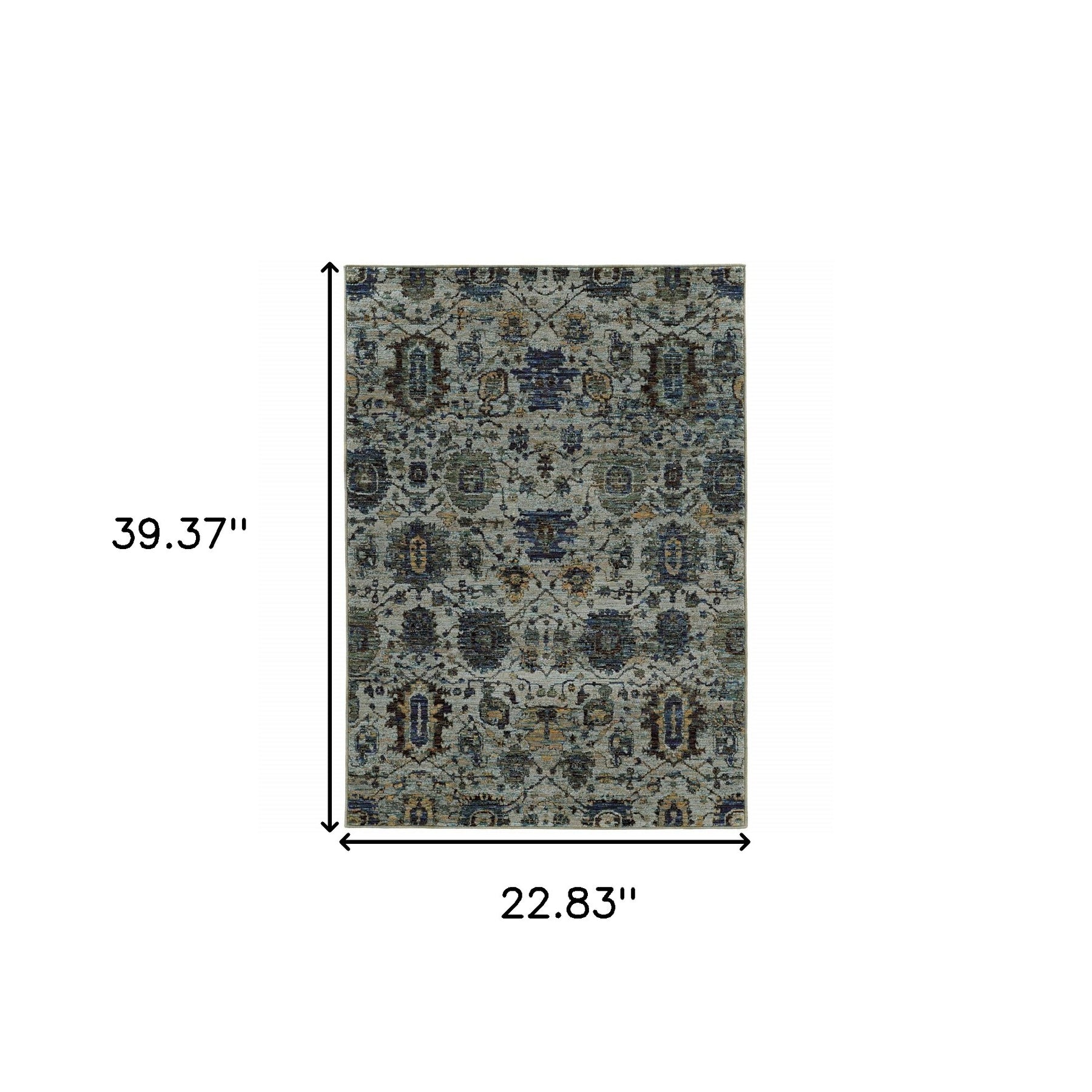 Set an inviting tone in your space with this 2-foot x 3-foot blue green oriental power loom area rug. This rectangle shaped rug features a oriental design in blue green to give it visual interest. A classic shape marries with good looking design for your space ideal for spaces with kids and pets, this rug is stain resistant to help repel stains and spilled liquids. Area rugs help to give warmth and sense of home to your space. 22.83-inch H x 39.37-inch W x 0.55-inch D