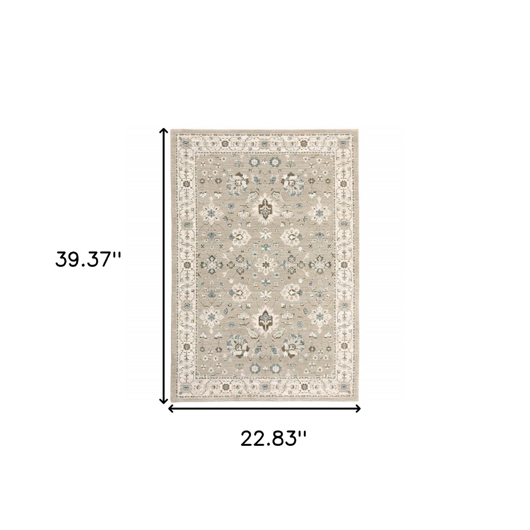 Set an inviting tone in your space with this 2-foot x 3-foot beige and ivory oriental power loom area rug. This rectangle shaped rug features a oriental design in beige and ivory to give it visual interest. A classic shape marries with good looking design for your space ideal for spaces with kids and pets, this rug is stain resistant to help repel stains and spilled liquids. Area rugs help to give warmth and sense of home to your space. 22.83-inch H x 39.37-inch W x 0.55-inch D