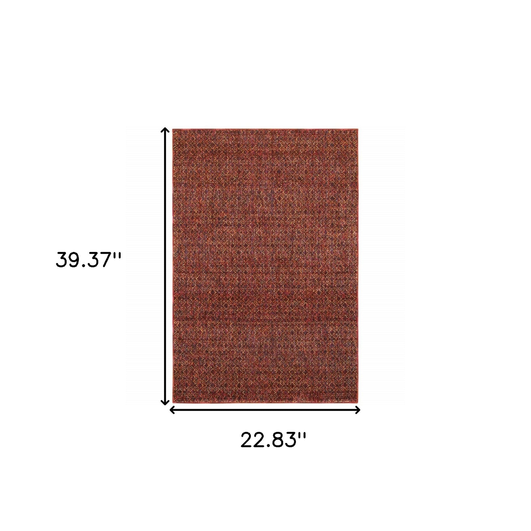 This 2-foot x 3-foot red and gold geometric power loom area rug, is a great way to add warmth to a room. This rectangle shaped rug features a geometric design in red and gold to give it visual interest. A classic shape marries with good looking design for your space ideal for spaces with kids and pets, this rug is stain resistant to help repel stains and spilled liquids. Area rugs help to give warmth and sense of home to your space. 22.83-inch H x 39.37-inch W x 0.55-inch D