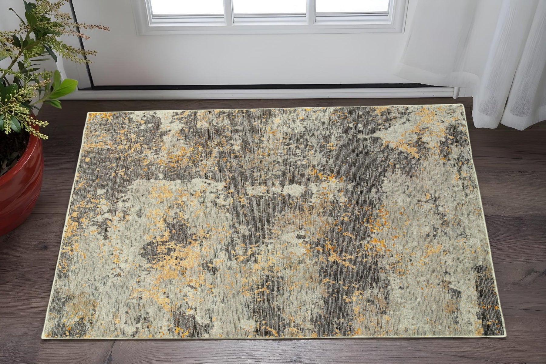 Add some artistry to your room with this 2-foot x 3-foot gray and ivory abstract power loom area rug. This rectangle shaped rug features a abstract design in gray and ivory to give it visual interest. A classic shape marries with good looking design for your space ideal for spaces with kids and pets, this rug is stain resistant to help repel stains and spilled liquids. Area rugs help to give warmth and sense of home to your space. 22.83-inch H x 39.37-inch W x 0.55-inch D