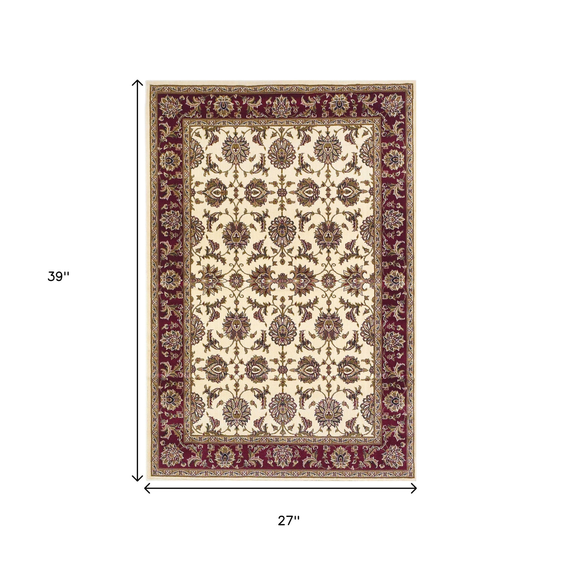 Add great coloration and comfortable texture to your space with this 2-foot x 3-foot ivory and red floral area rug. Ideal for spaces with kids and pets, this rug is stain resistant to help repel dirt and spilled liquids. Built to last, this rug crafted from polypropylene fibers is known for its durability and long lasting appeal. Rugs are a great way to showcase your style, hide imperfections, warm your home and reduce noise. This smaller sized, traditional styled rug is just what you need for your walkway, bedside, in front of door, cabinet, refrigerator, or chair. 27-inch h x 39-inch w x 0.5-inch d.