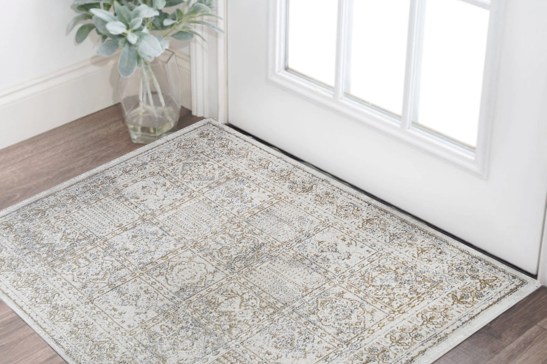 Add some artistry to your room with this 2-foot x 3-foot ivory oriental distressed area rug with fringe. This rectangle shaped rug features a oriental design in ivory to give it visual interest. A classic shape marries with good looking design for your space the coloring of this rug adds a delightfully neutral tone to your home and will easily match with most any decor. Ideal for spaces with kids and pets, this rug is stain resistant to help repel stains and spilled liquids. Tassel ends bring a timeless and fashionable look to your interior. Area rugs help to give warmth and sense of home to your space. 25-inch H x 39-inch W x 0.39-inch D