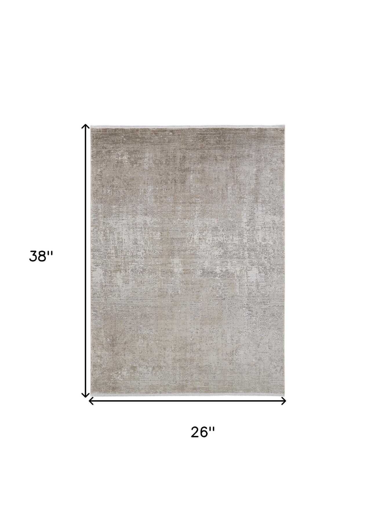 Set an inviting tone in your space with this 2-foot x 3-foot tan and ivory abstract power loom distressed area rug with fringe. This rectangle shaped rug features a abstract design in tan and ivory to give it visual interest. A classic shape marries with good looking design for your space tassel ends bring a timeless and fashionable look to your interior. 26-inch H x 38-inch W x 0.32-inch D