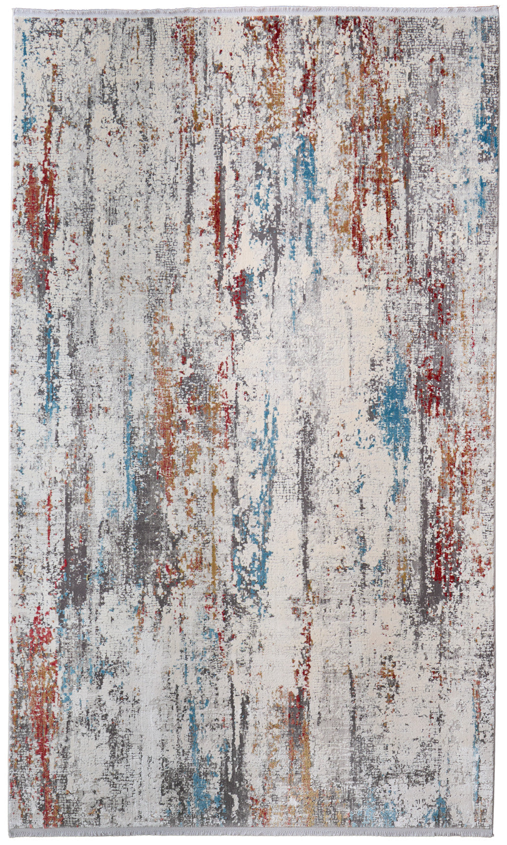 Add some artistry to your room with this 2-foot x 3-foot gray blue and red abstract power loom area rug with fringe. This rectangle shaped rug features a abstract design in gray blue and red to give it visual interest. A classic shape marries with good looking design for your space tassel ends bring a timeless and fashionable look to your interior. 26-inch H x 38-inch W x 0.32-inch D