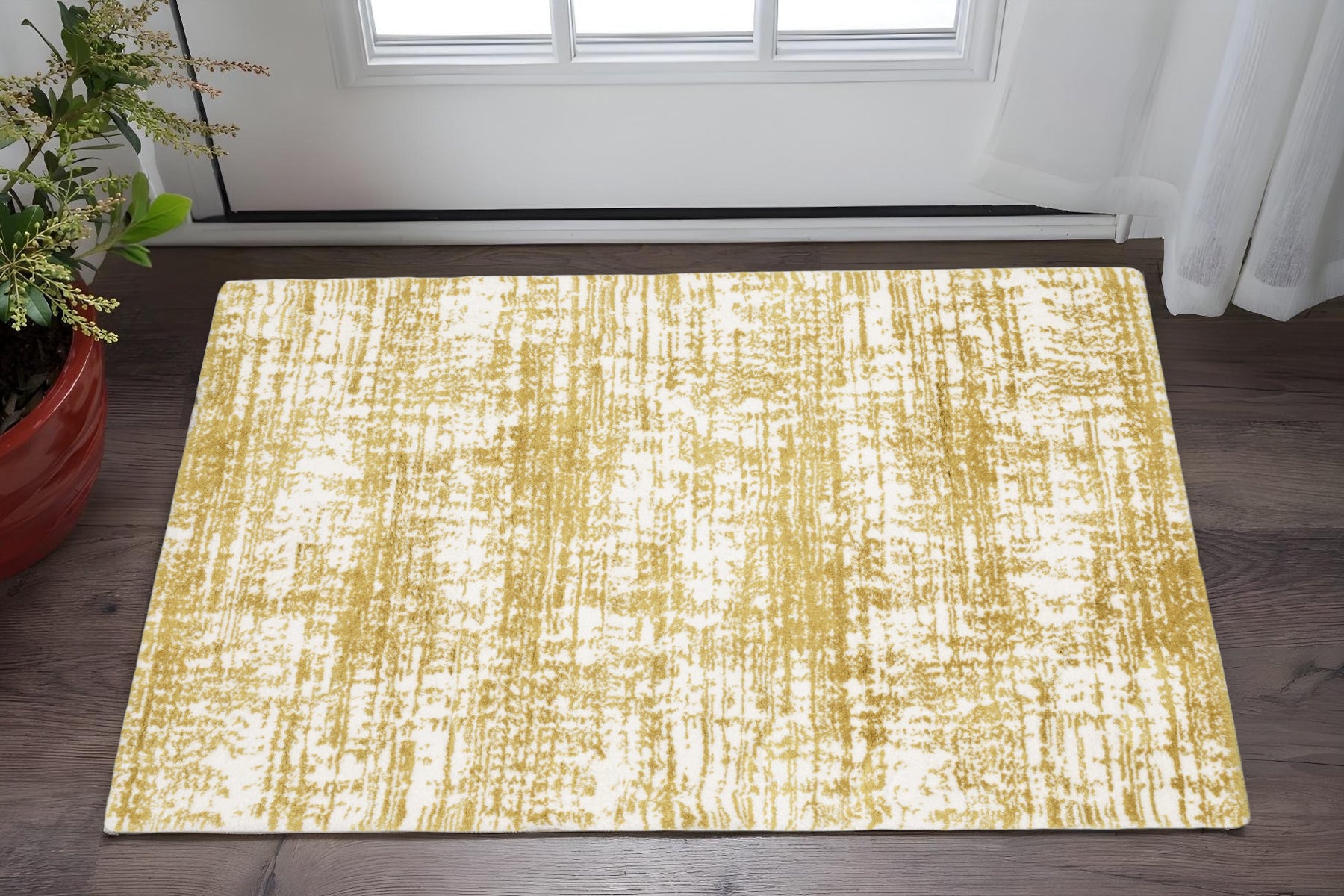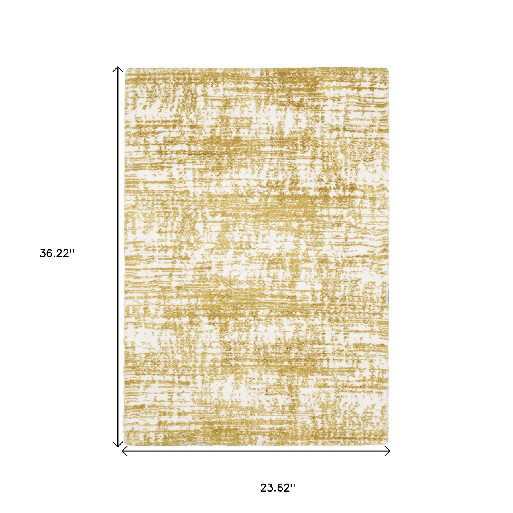 Set an inviting tone in your space with this 2-foot x 3-foot gold abstract power loom area rug. This rectangle shaped rug features a abstract design in gold to give it visual interest. A classic shape marries with good looking design for your space ideal for spaces with kids and pets, this rug is stain resistant to help repel stains and spilled liquids. Place this area rug against a hardwood or tile floor and it will enliven your living space with style and sophistication. 23.62-inch H x 36.22-inch W x 0.98-inch D