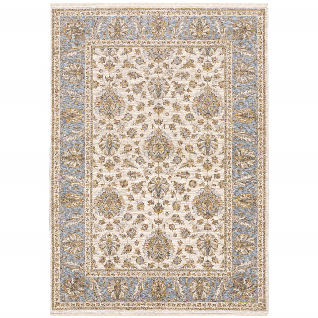 Add some artistry to your room with this 2' x 3' ivory and blue oriental power loom stain resistant area rug with fringe. This rectangle shaped rug features a oriental design in ivory and blue to give it visual interest. A classic shape marries with good looking design for your space Ideal for spaces with kids and pets, this rug is stain resistant to help repel stains and spilled liquids. Tassel ends bring a timeless and fashionable look to your interior. Place this area rug against a hardwood or tile floor and it will enliven your living space with style and sophistication. 0.23" H x 23.62" W x 36.22" D