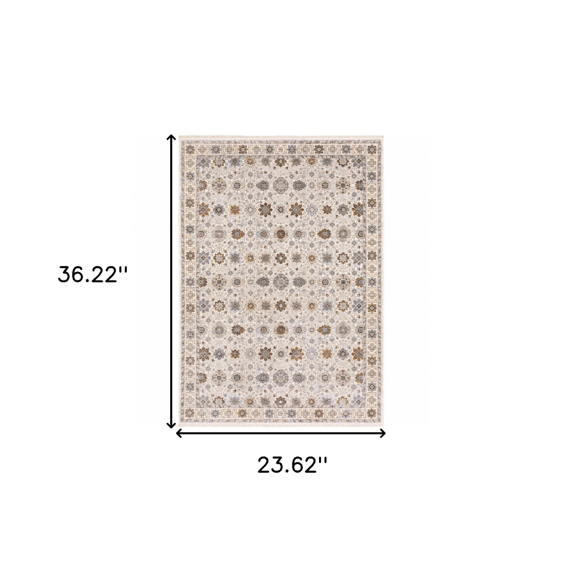 Set an inviting tone in your space with this 2' x 3' ivory and gold oriental power loom stain resistant area rug with fringe. This rectangle shaped rug features a oriental design in ivory and gold to give it visual interest. A classic shape marries with good looking design for your space Ideal for spaces with kids and pets, this rug is stain resistant to help repel stains and spilled liquids. Tassel ends bring a timeless and fashionable look to your interior. Place this area rug against a hardwood or tile floor and it will enliven your living space with style and sophistication. 0.23" H x 23.62" W x 36.22" D
