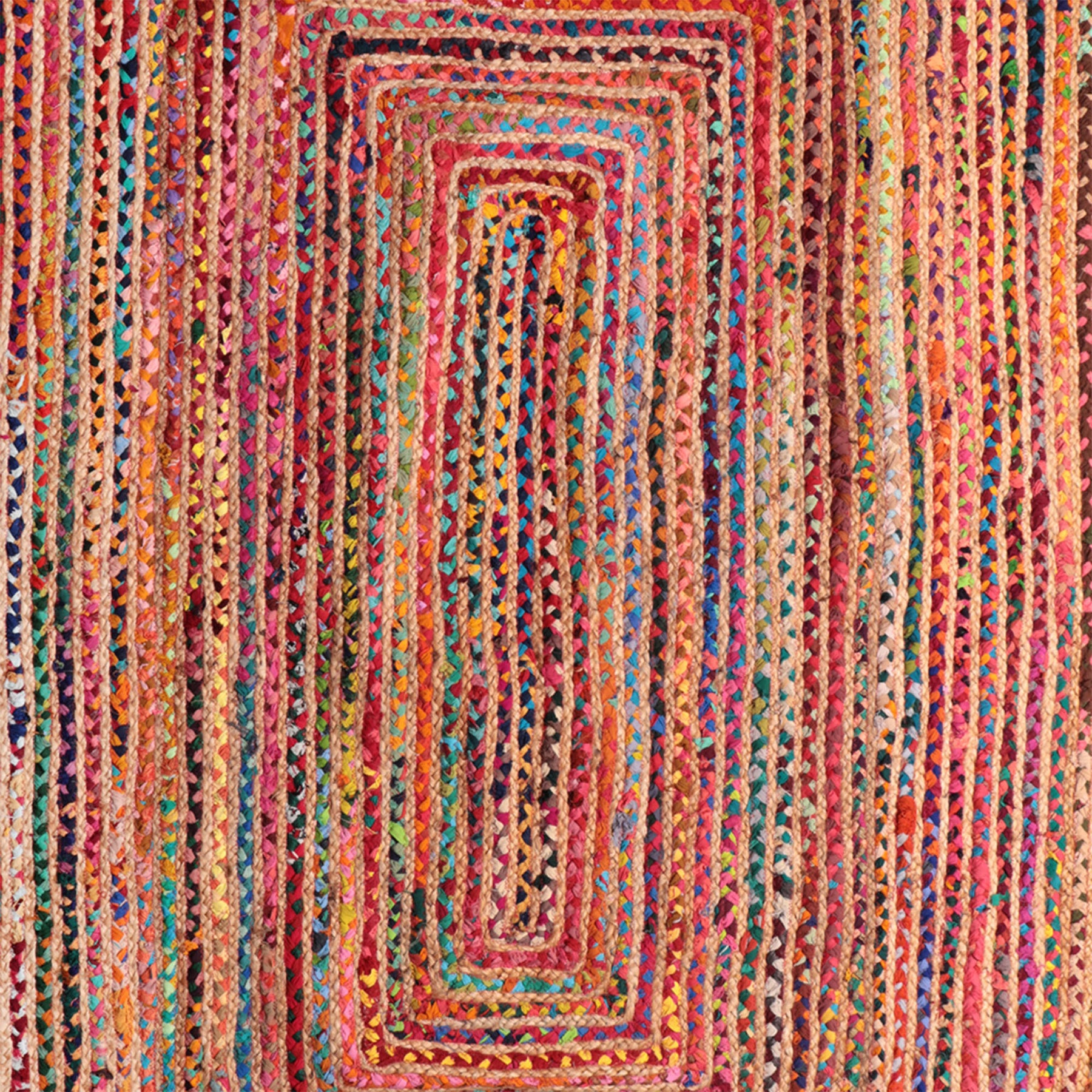 Add some artistry to your room with this 3-foot tan geometric shag hand braided round rug. Rugs are a great way to showcase your style, hide imperfections, warm your home and reduce noise. This geometric round shaped rug features a geometric pattern in tan that combines a good looking print with a unique and updated shape. The mix of shape, color, and design gives this rug refreshing visual interest. The retro shag construction of this luxurious rug will provide a soft and comfortable barrier to color tile and hardwood floors. This smaller sized, bohemian styled rug is just what you need for your walkway, bedside, in front of door, cabinet, refrigerator, or chair. 36-inch h x 36-inch w x 1-inch d.