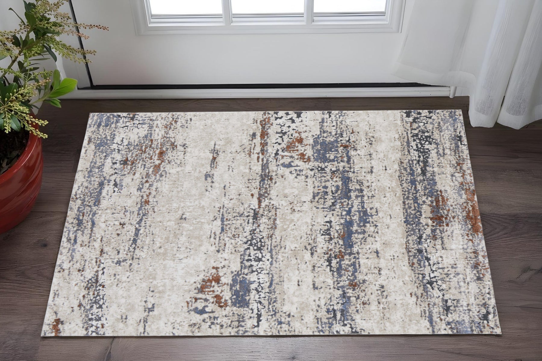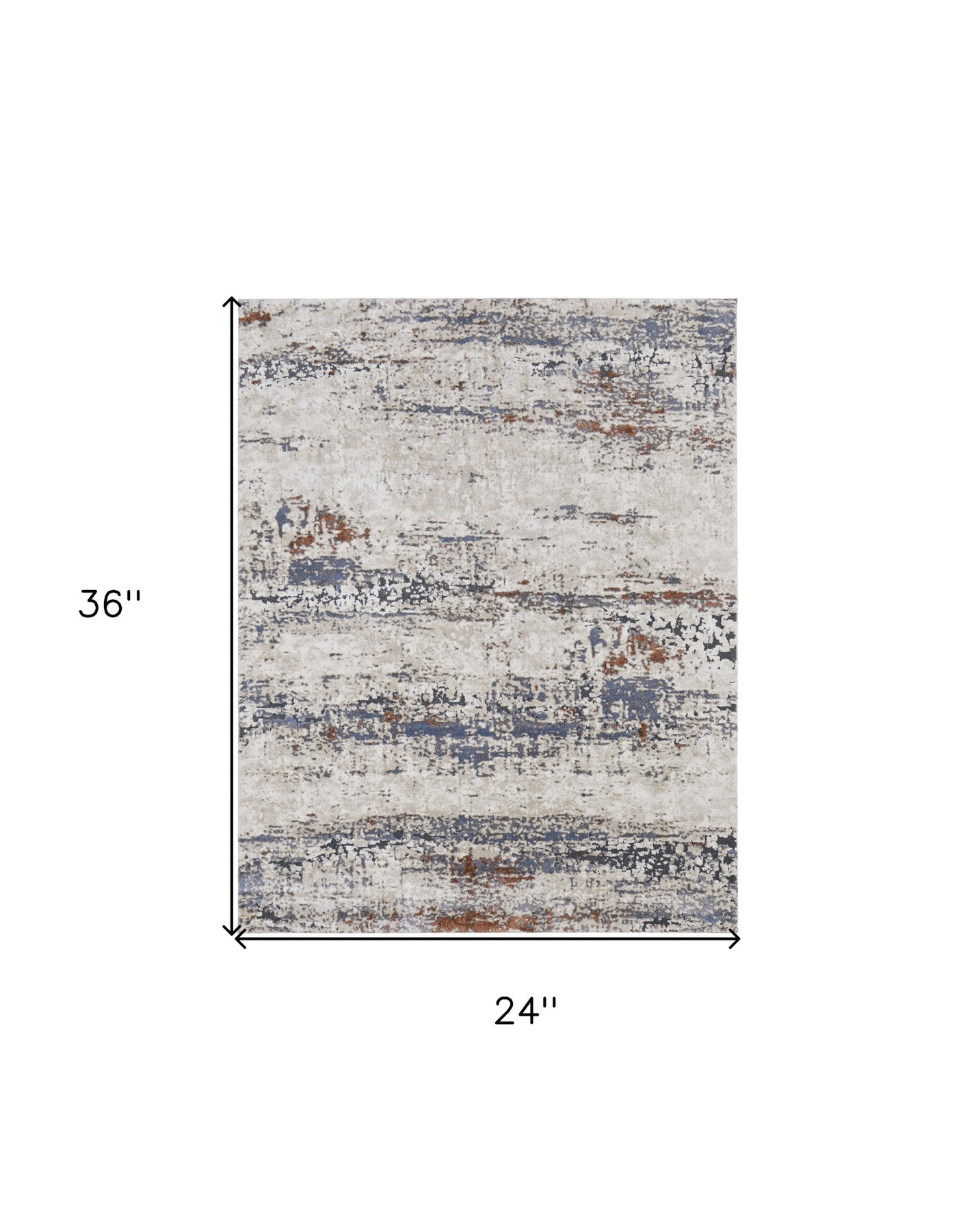 Add great coloration and comfortable texture to your space with this 2-foot x 3-foot gray blue and ivory abstract power loom area rug. This rectangle shaped rug features a abstract design in gray blue and ivory to give it visual interest. A classic shape marries with good looking design for your space ideal for spaces with kids and pets, this rug is stain resistant to help repel stains and spilled liquids. Place this area rug against a hardwood or tile floor and it will enliven your living space with style and sophistication. 24-inch H x 36-inch W x 0.87-inch D