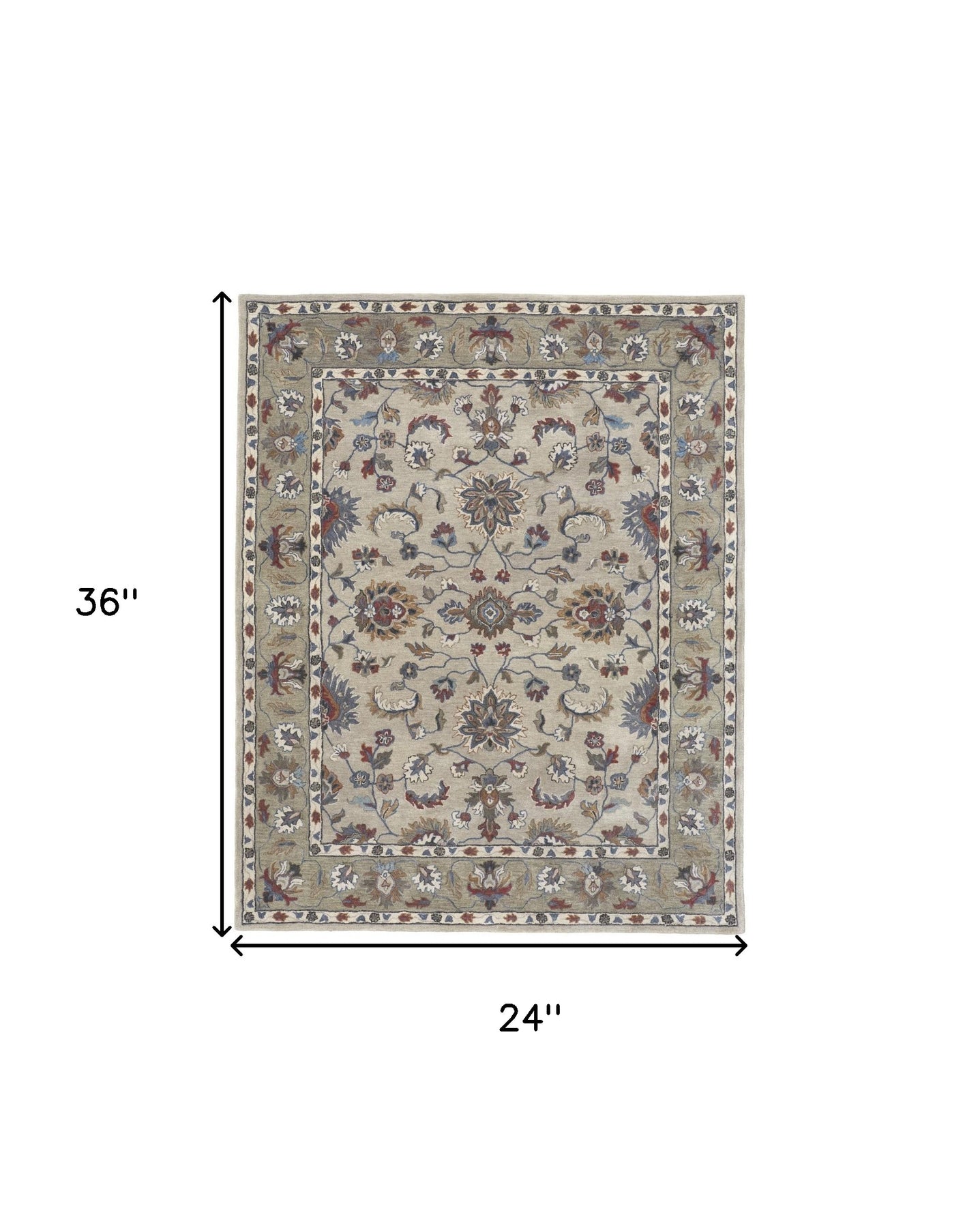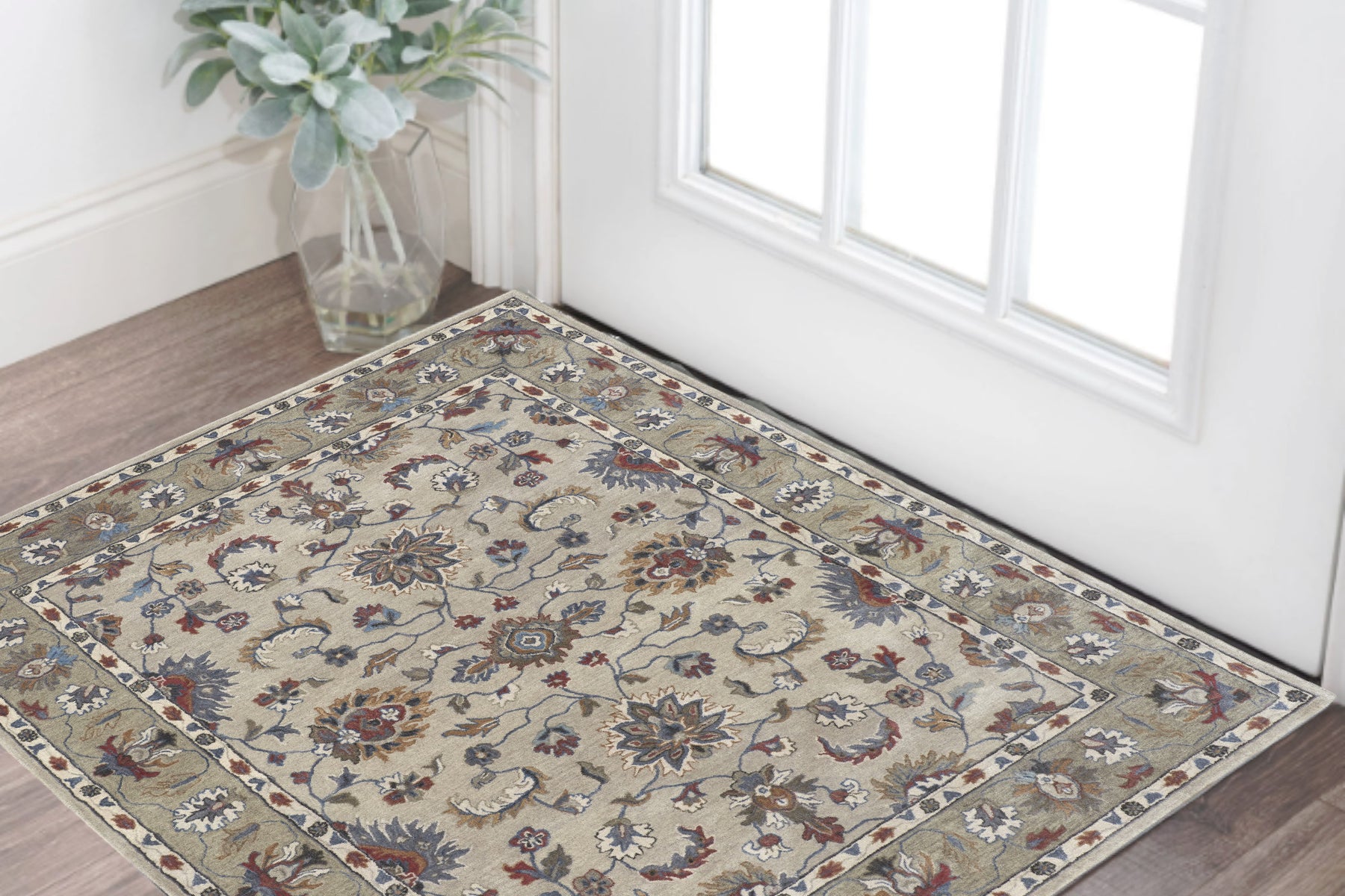 Add great coloration and comfortable texture to your space with this 2-foot x 3-foot ivory and blue wool floral hand tufted area rug. This rectangle shaped rug features a floral design in ivory and blue to give it visual interest. A classic shape marries with good looking design for your space ideal for spaces with kids and pets, this rug is stain resistant to help repel stains and spilled liquids. Place this area rug against a hardwood or tile floor and it will enliven your living space with style and sophistication. 24-inch H x 36-inch W x 0.68-inch D