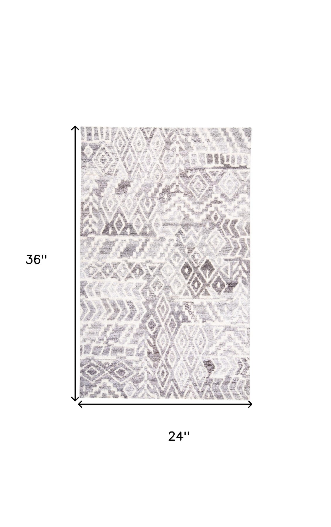 Add great coloration and comfortable texture to your space with this 2-foot x 3-foot gray and white abstract geometric hand tufted distressed area rug. Crafted from wool blend fibers that give this piece premium texture, refinement, and appeal. This rectangle shaped rug features a abstract geometric design that will add a functional and decorative accent to your space. This smaller sized rug is just what you need for your walkway, or in front of door, cabinet, refrigerator, or chair. 24-inch h x 36-inch w x 0.55-inch d