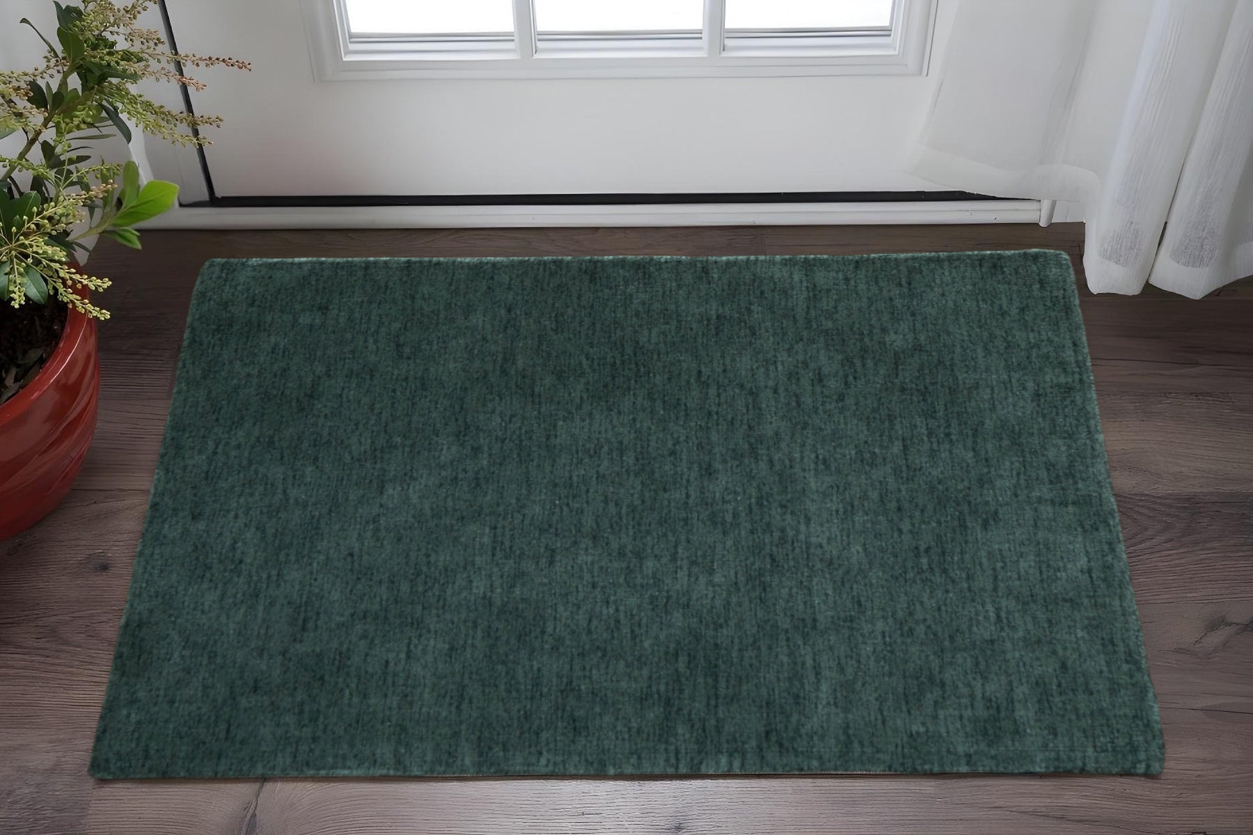 Set an inviting tone in your space with this 2-foot x 3-foot green hand woven area rug. Ideal for spaces with kids and pets, this rug is stain resistant to help repel dirt and spilled liquids. Crafted by skilled artisans, this hand woven rug is genuine and unique. No two will be exactly alike. Crafted from wool blend fibers that give this piece premium texture, refinement, and appeal. Rugs are a great way to showcase your style, hide imperfections, warm your home and reduce noise. This rectangle shaped rug flaunts a green color that will be a great way to accent your space. Solid colors are versatile and will blend with any existing decor style. This smaller sized, casual styled rug is just what you need for your walkway, bedside, in front of door, cabinet, refrigerator, or chair. 24-inch h x 36-inch w x 0.52-inch d.