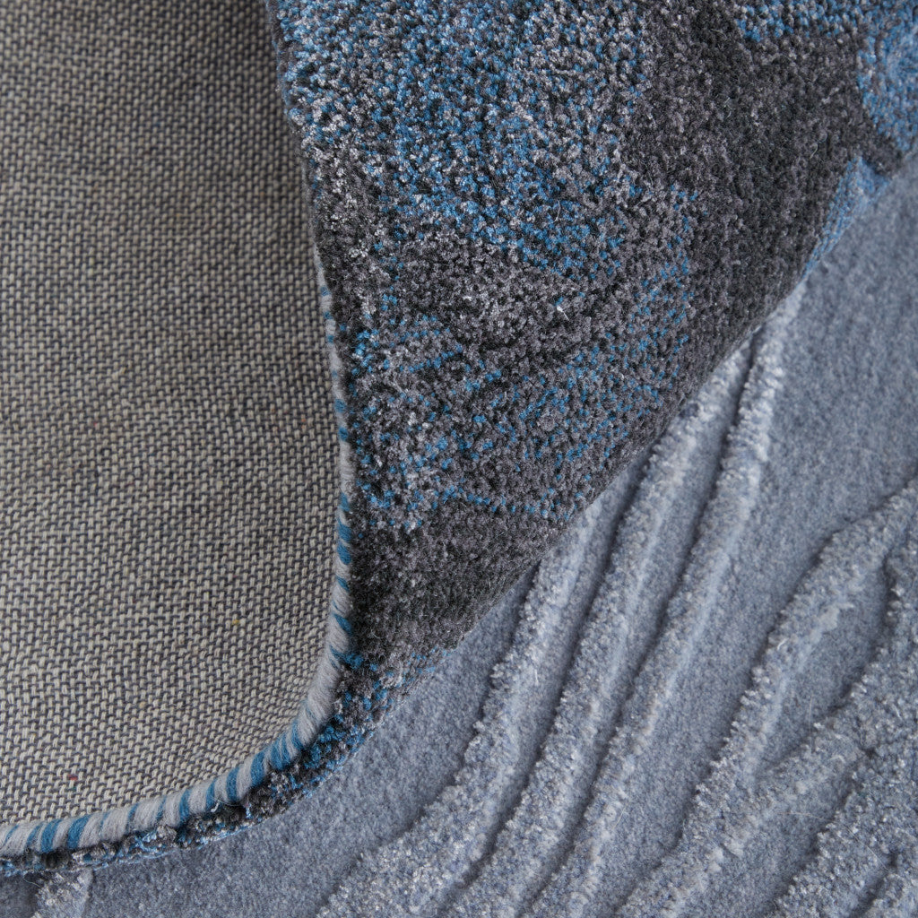Add some artistry to your room with this 2-foot x 3-foot blue black and gray abstract hand tufted area rug. Crafted by skilled artisans, this hand tufted rug is genuine and unique. No two will be exactly alike. Crafted from wool blend fibers that give this piece premium texture, refinement, and appeal. Rugs are a great way to showcase your style, hide imperfections, warm your home and reduce noise. This smaller sized, coastal styled rug is just what you need for your walkway, bedside, in front of door, cabinet, refrigerator, or chair. 24-inch h x 36-inch w x 0.51-inch d.