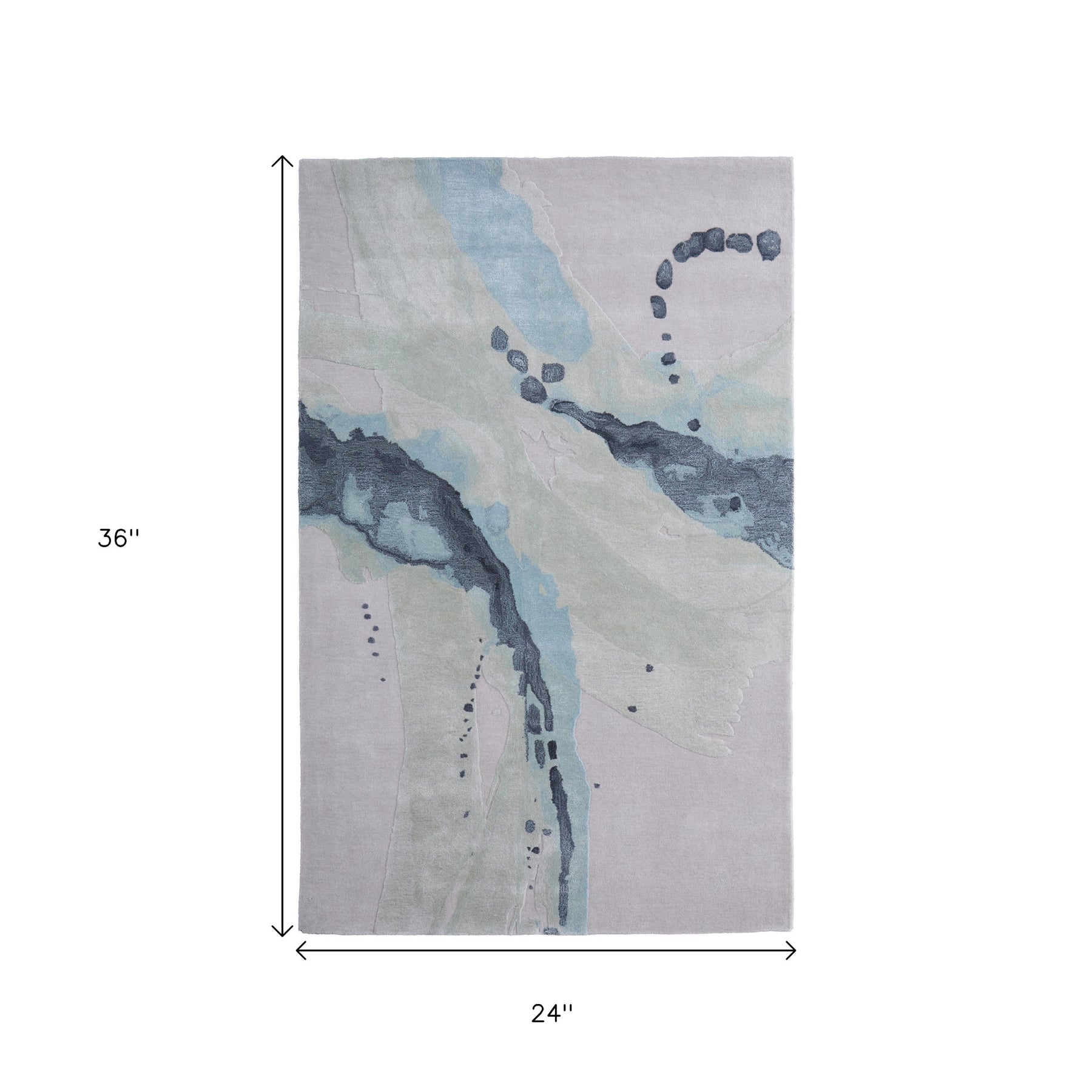 Add great coloration and comfortable texture to your space with this 2-foot x 3-foot green blue and ivory abstract hand tufted area rug. Crafted by skilled artisans, this hand tufted rug is genuine and unique. No two will be exactly alike. Crafted from wool blend fibers that give this piece premium texture, refinement, and appeal. Rugs are a great way to showcase your style, hide imperfections, warm your home and reduce noise. This smaller sized, bohemian styled rug is just what you need for your walkway, bedside, in front of door, cabinet, refrigerator, or chair. 24-inch h x 36-inch w x 0.51-inch d.