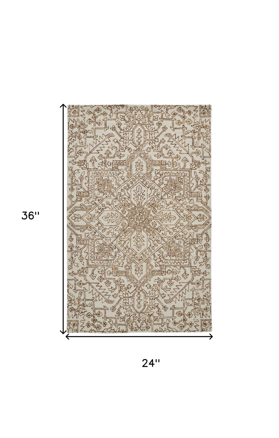 Add great coloration and comfortable texture to your space with this 2' x 3' ivory and brown wool floral tufted handmade stain resistant area rug. This rectangle shaped rug features a floral design in ivory and brown to give it visual interest. A classic shape marries with good looking design for your space Ideal for spaces with kids and pets, this rug is stain resistant to help repel stains and spilled liquids. Area Rugs help to give warmth and sense of home to your space. 0.5" H x 24" W x 36" D