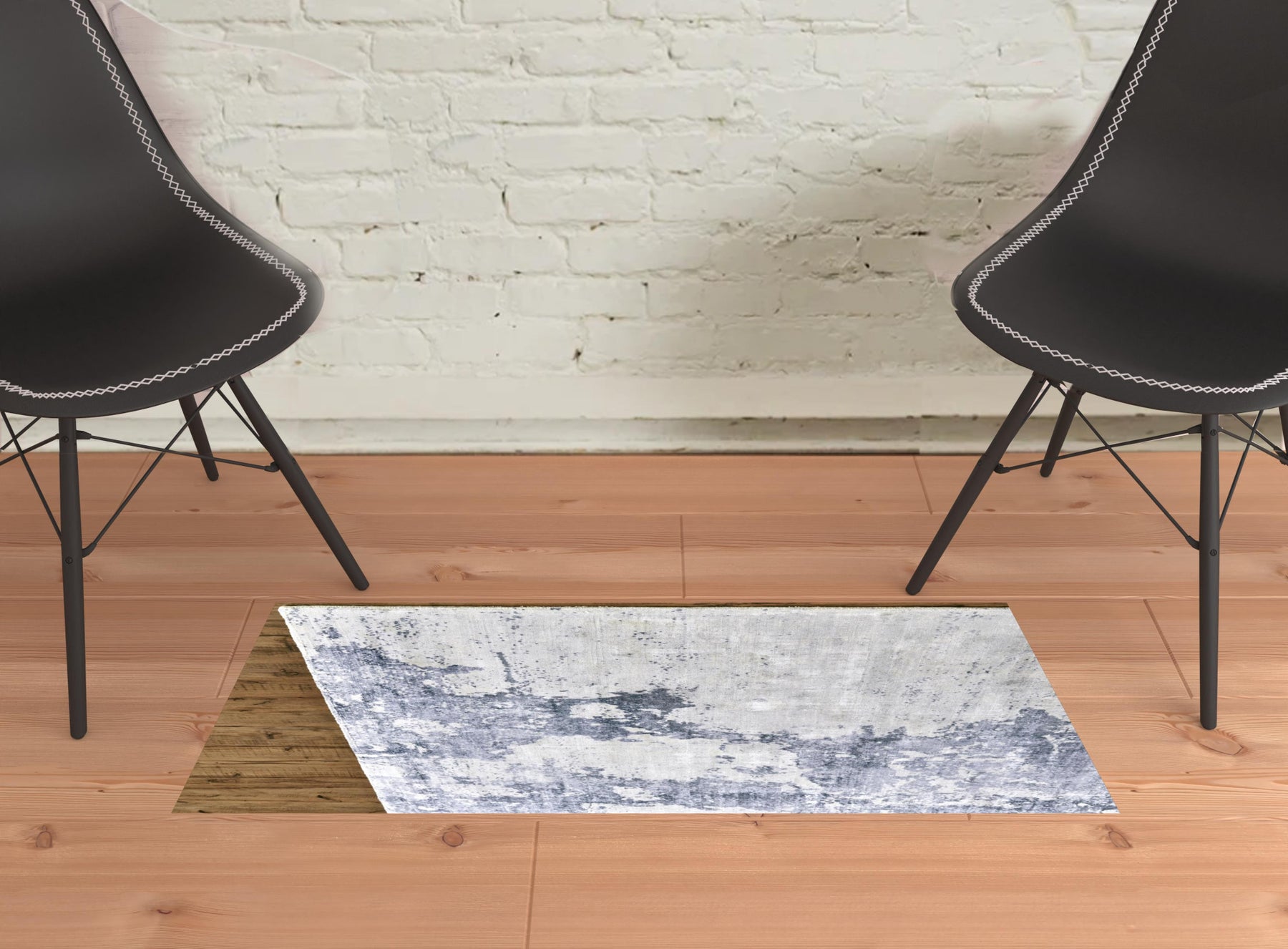 Add some artistry to your room with this 2' x 3' blue gray and ivory abstract hand woven area rug. This rectangle shaped rug features a abstract design in blue gray and ivory to give it visual interest. A classic shape marries with good looking design for your space Crafted by skilled artisans, this hand woven rug is genuine and unique. No two will be exactly alike. Area Rugs help to give warmth and sense of home to your space. 0.5" H x 24" W x 36" D