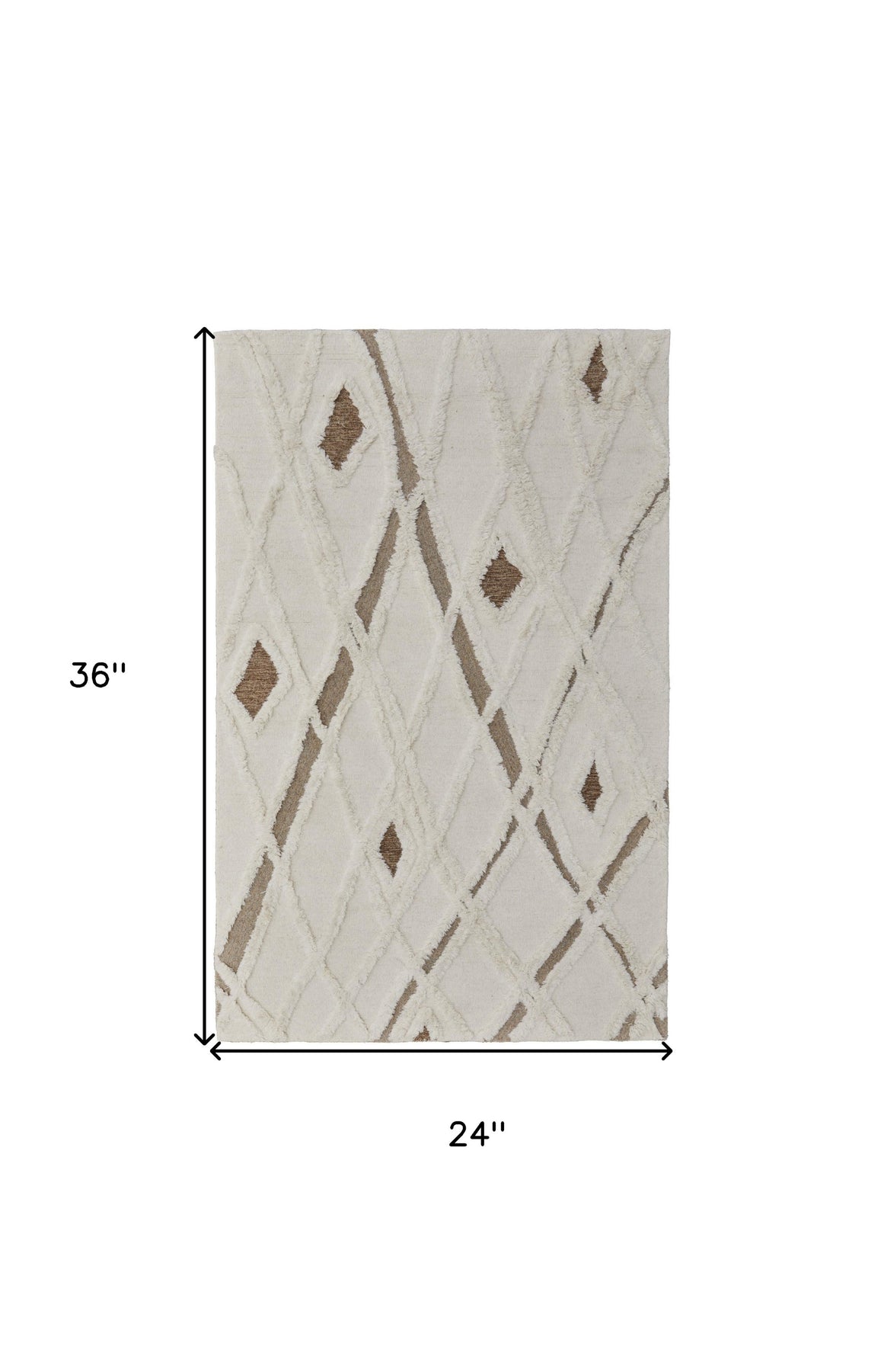 This 2-foot x 3-foot ivory taupe and brown wool geometric hand tufted area rug, is a great way to add warmth to a room. This rectangle shaped rug features a geometric design in ivory taupe and brown to give it visual interest. A classic shape marries with good looking design for your space ideal for spaces with kids and pets, this rug is stain resistant to help repel stains and spilled liquids. Area rugs help to give warmth and sense of home to your space. 24-inch H x 36-inch W x 0.5-inch D