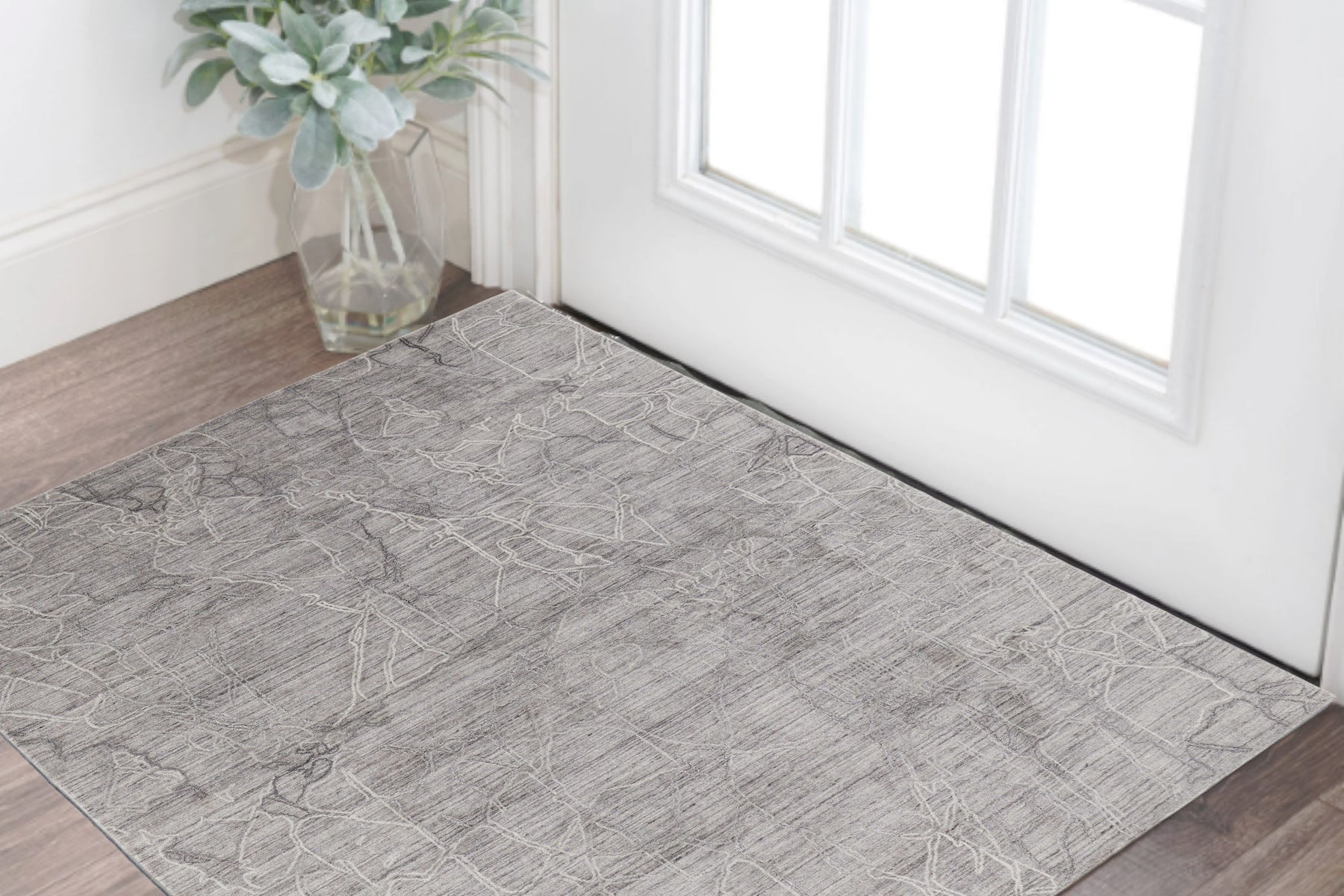 This 2-foot x 3-foot gray and ivory abstract hand woven worn faded area rug, is a great way to add warmth to a room. Crafted by skilled artisans, this hand woven rug is genuine and unique. No two will be exactly alike. Crafted from wool blend fibers that give this piece premium texture, refinement, and appeal. This rectangle shaped rug features a abstract design that will add a functional and decorative accent to your space. This smaller sized rug is just what you need for your walkway, or in front of door, cabinet, refrigerator, or chair. 24-inch h x 36-inch w x 0.5-inch d