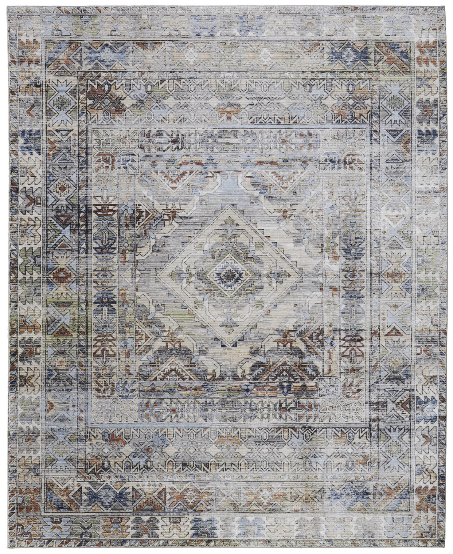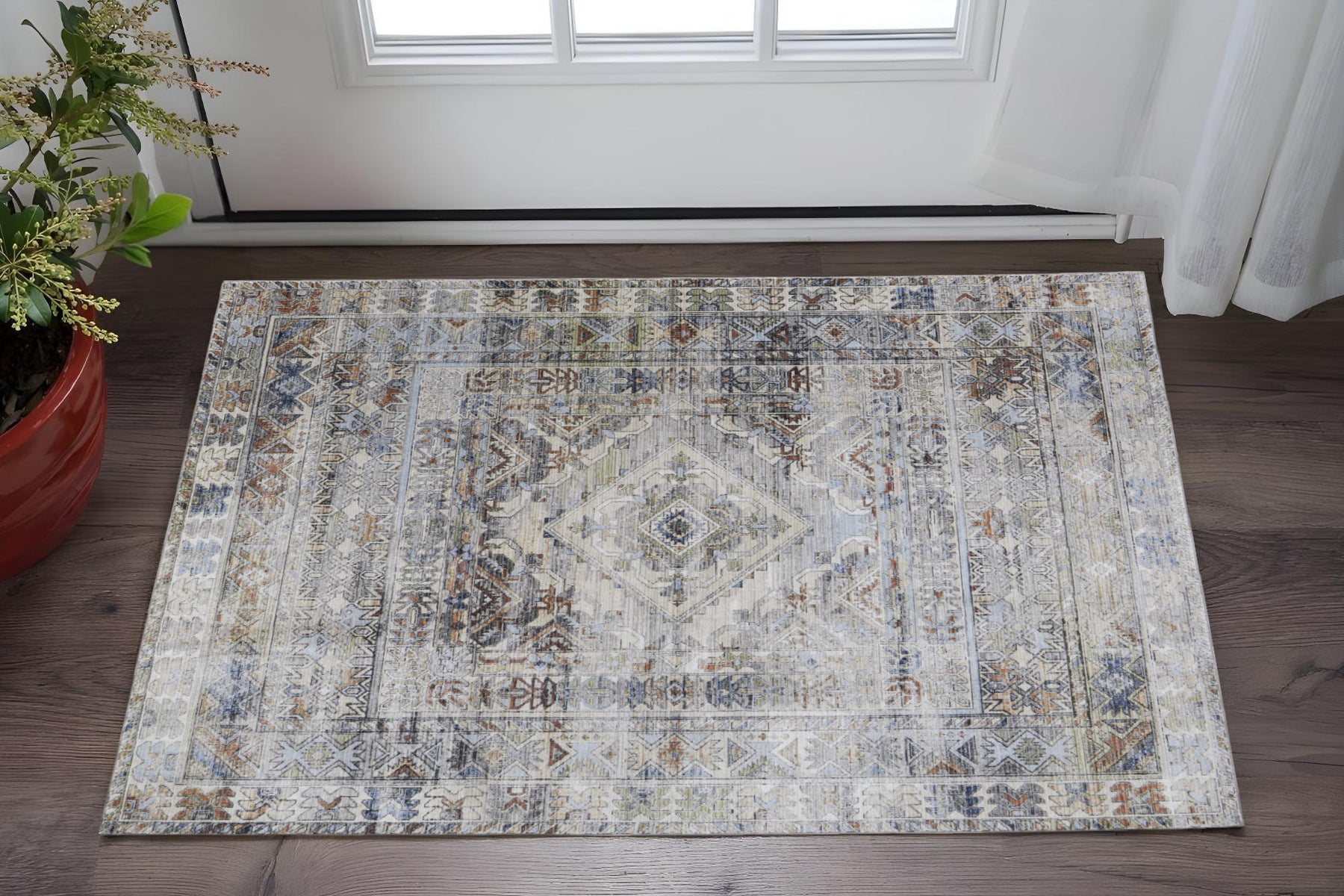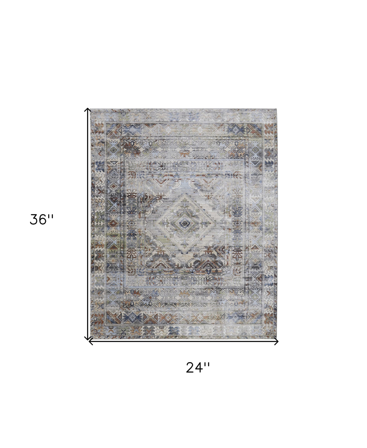Add some artistry to your room with this 2-foot x 3-foot gray blue and red abstract power loom worn faded area rug. This rectangle shaped rug features a abstract design that will add a functional and decorative accent to your space. Ideal for spaces with kids and pets, this rug is stain resistant to help repel dirt and spilled liquids. This smaller sized rug is just what you need for your walkway, or in front of door, cabinet, refrigerator, or chair. 24-inch h x 36-inch w x 0.47-inch d
