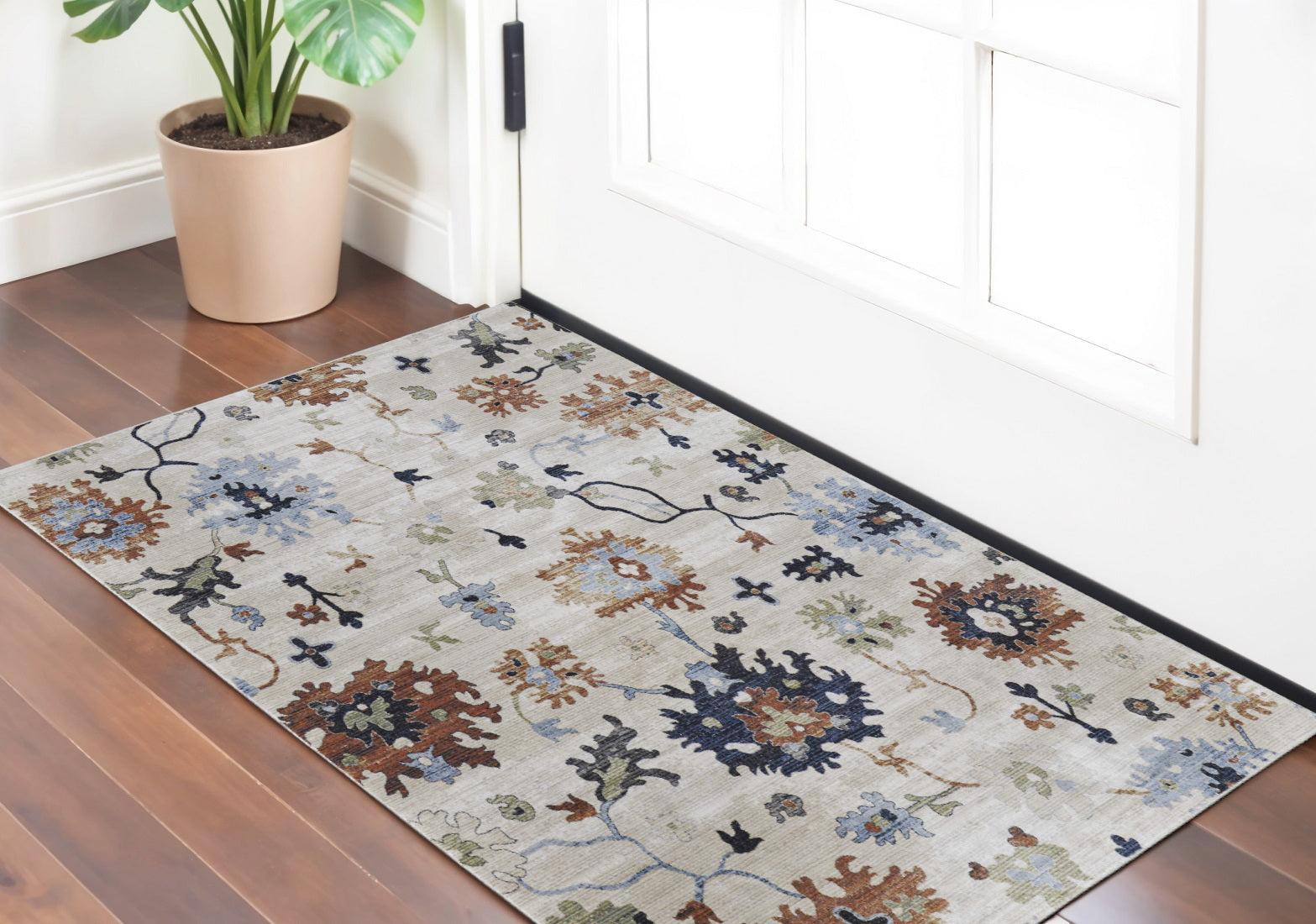 Add great coloration and comfortable texture to your space with this 2-foot x 3-foot ivory red and blue floral power loom area rug. This rectangle shaped rug features a floral design that will add a functional and decorative accent to your space. Ideal for spaces with kids and pets, this rug is stain resistant to help repel dirt and spilled liquids. This smaller sized rug is just what you need for your walkway, or in front of door, cabinet, refrigerator, or chair. 24-inch h x 36-inch w x 0.47-inch d