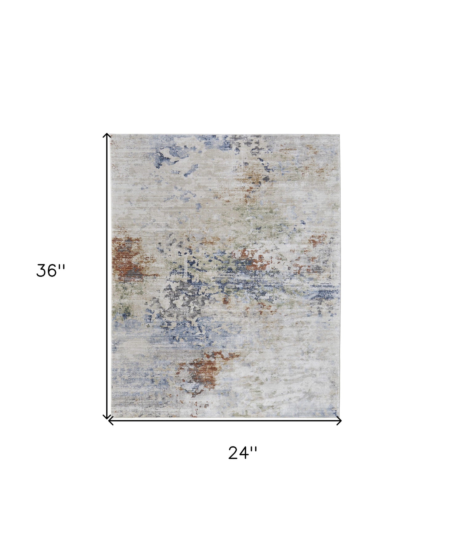 Add some artistry to your room with this 2-foot x 3-foot red blue and ivory abstract power loom area rug. This rectangle shaped rug features a abstract design in red blue and ivory to give it visual interest. A classic shape marries with good looking design for your space ideal for spaces with kids and pets, this rug is stain resistant to help repel stains and spilled liquids. Area rugs help to give warmth and sense of home to your space. 24-inch H x 36-inch W x 0.47-inch D