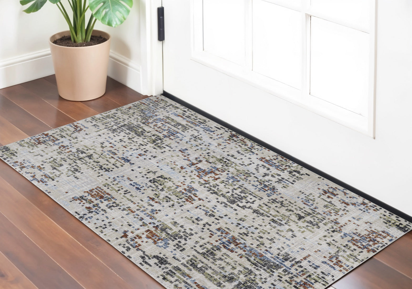 Add some artistry to your room with this 2-foot x 3-foot ivory green and blue abstract power loom area rug. This rectangle shaped rug features a abstract design in ivory green and blue to give it visual interest. A classic shape marries with good looking design for your space ideal for spaces with kids and pets, this rug is stain resistant to help repel stains and spilled liquids. Area rugs help to give warmth and sense of home to your space. 24-inch H x 36-inch W x 0.47-inch D