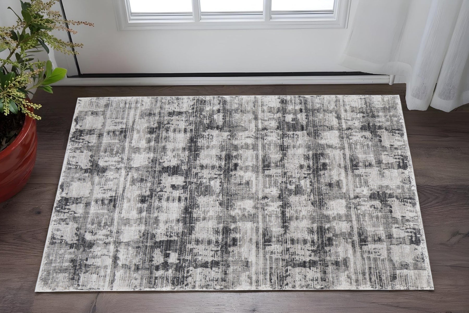 Add some artistry to your room with this 2-foot x 3-foot gray and ivory abstract power loom area rug. This rectangle shaped rug features a abstract design that will add a functional and decorative accent to your space. Ideal for spaces with kids and pets, this rug is stain resistant to help repel dirt and spilled liquids. This smaller sized rug is just what you need for your walkway, or in front of door, cabinet, refrigerator, or chair. 24-inch h x 36-inch w x 0.47-inch d