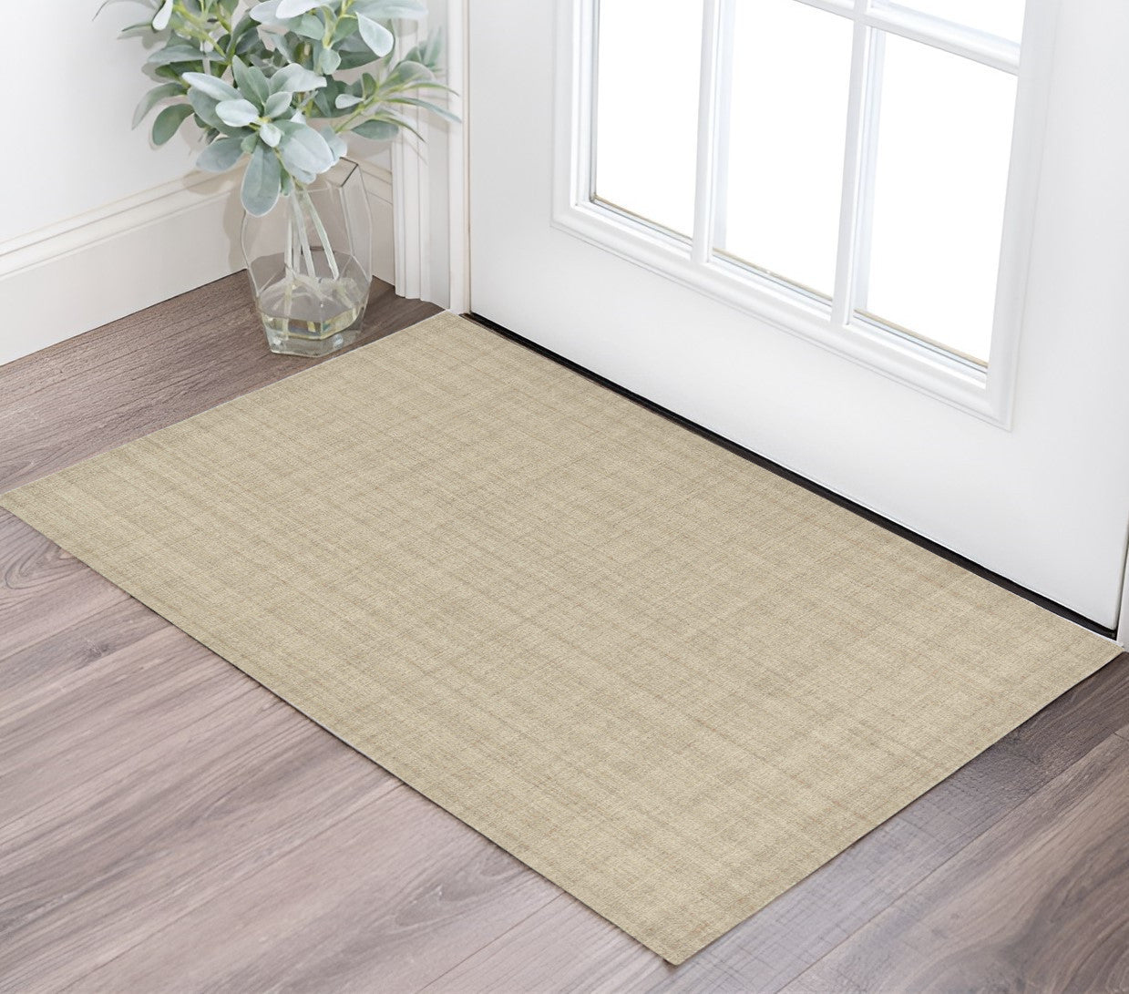 Add great coloration and comfortable texture to your space with this 2-foot x 3-foot champagne and brown wool plaid hand tufted area rug. Crafted by skilled artisans, this hand tufted rug is genuine and unique. No two will be exactly alike. Rugs are a great way to showcase your style, hide imperfections, warm your home and reduce noise. This smaller sized, transitional styled rug is just what you need for your walkway, bedside, in front of door, cabinet, refrigerator, or chair. 24-inch h x 36-inch w x 0.45-inch d.