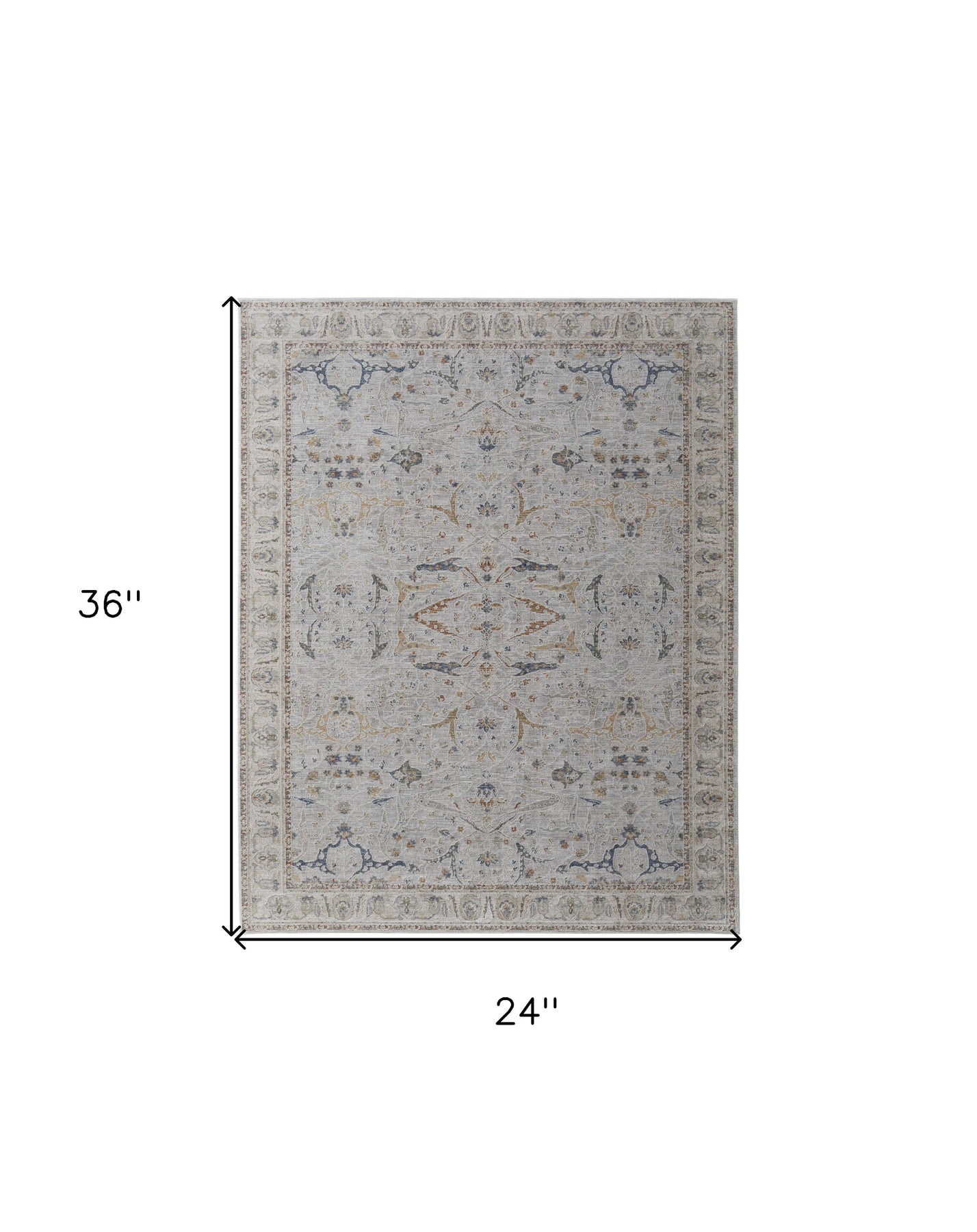 This 2-foot x 3-foot ivory taupe and blue ikat power loom worn faded area rug with fringe, is a great way to add warmth to a room. This rectangle shaped rug features a ikat design that will add a functional and decorative accent to your space. Ideal for spaces with kids and pets, this rug is stain resistant to help repel dirt and spilled liquids. Tassel ends bring a timeless and fashionable look to your interior. This smaller sized rug is just what you need for your walkway, or in front of door, cabinet, refrigerator, or chair. 24-inch h x 36-inch w x 0.43-inch d