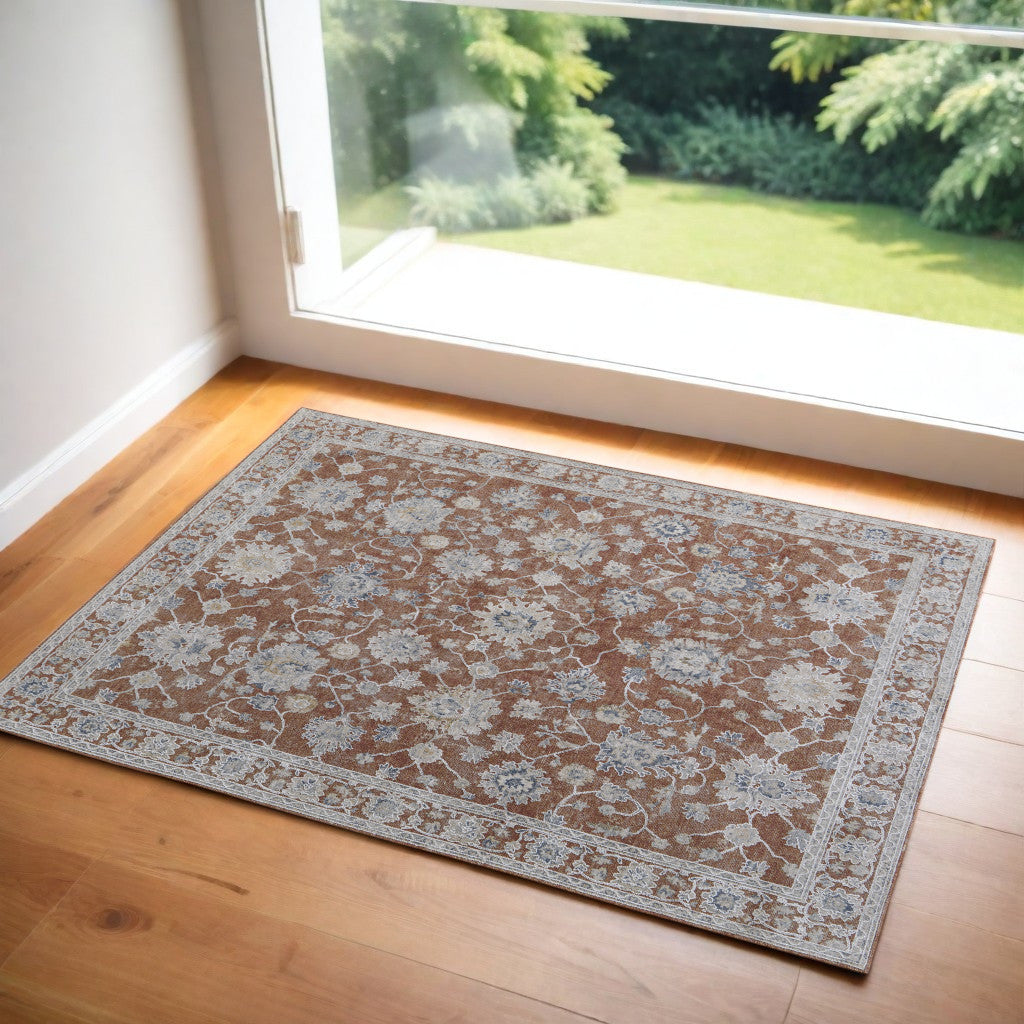 Add great coloration and comfortable texture to your space with this 2-foot x 3-foot red blue and ivory floral power loom worn faded area rug with fringe. This rectangle shaped rug features a floral design that will add a functional and decorative accent to your space. Ideal for spaces with kids and pets, this rug is stain resistant to help repel dirt and spilled liquids. Tassel ends bring a timeless and fashionable look to your interior. This smaller sized rug is just what you need for your walkway, or in front of door, cabinet, refrigerator, or chair. 24-inch h x 36-inch w x 0.43-inch d