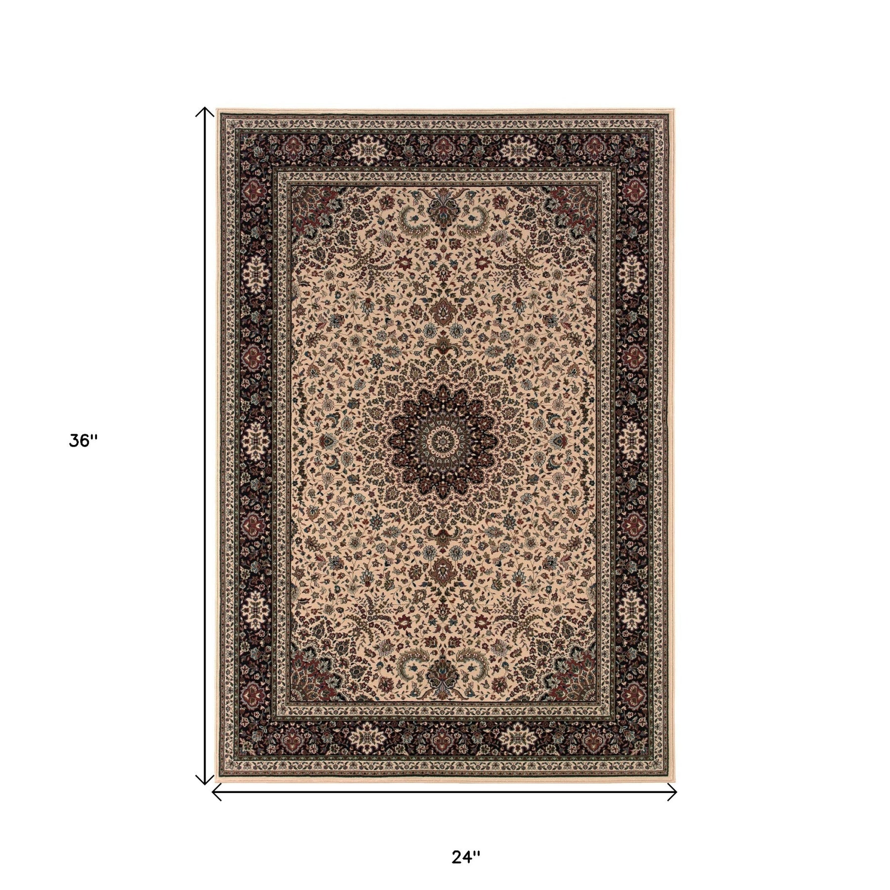 This 2-foot x 3-foot ivory and black oriental area rug, is a great way to add warmth to a room. Ideal for spaces with kids and pets, this rug is stain resistant to help repel dirt and spilled liquids. Built to last, this rug crafted from polypropylene fibers is known for its durability and long lasting appeal. Rugs are a great way to showcase your style, hide imperfections, warm your home and reduce noise. This smaller sized, traditional styled rug is just what you need for your walkway, bedside, in front of door, cabinet, refrigerator, or chair. 24-inch h x 36-inch w x 0.43-inch d.