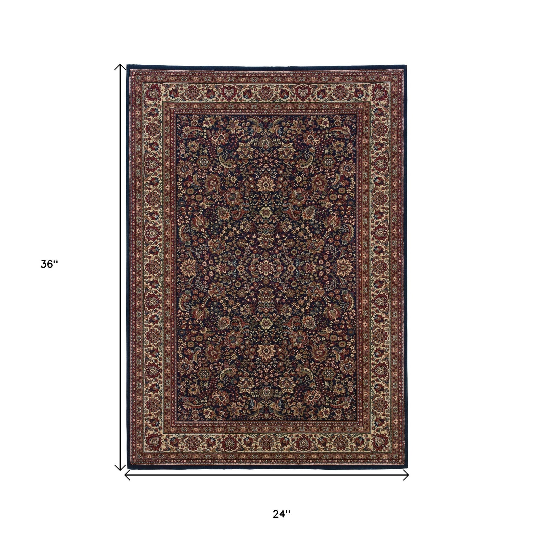 Set an inviting tone in your space with this 2-foot x 3-foot blue and red oriental area rug. Ideal for spaces with kids and pets, this rug is stain resistant to help repel dirt and spilled liquids. Built to last, this rug crafted from polypropylene fibers is known for its durability and long lasting appeal. Rugs are a great way to showcase your style, hide imperfections, warm your home and reduce noise. This smaller sized, traditional styled rug is just what you need for your walkway, bedside, in front of door, cabinet, refrigerator, or chair. 24-inch h x 36-inch w x 0.43-inch d.