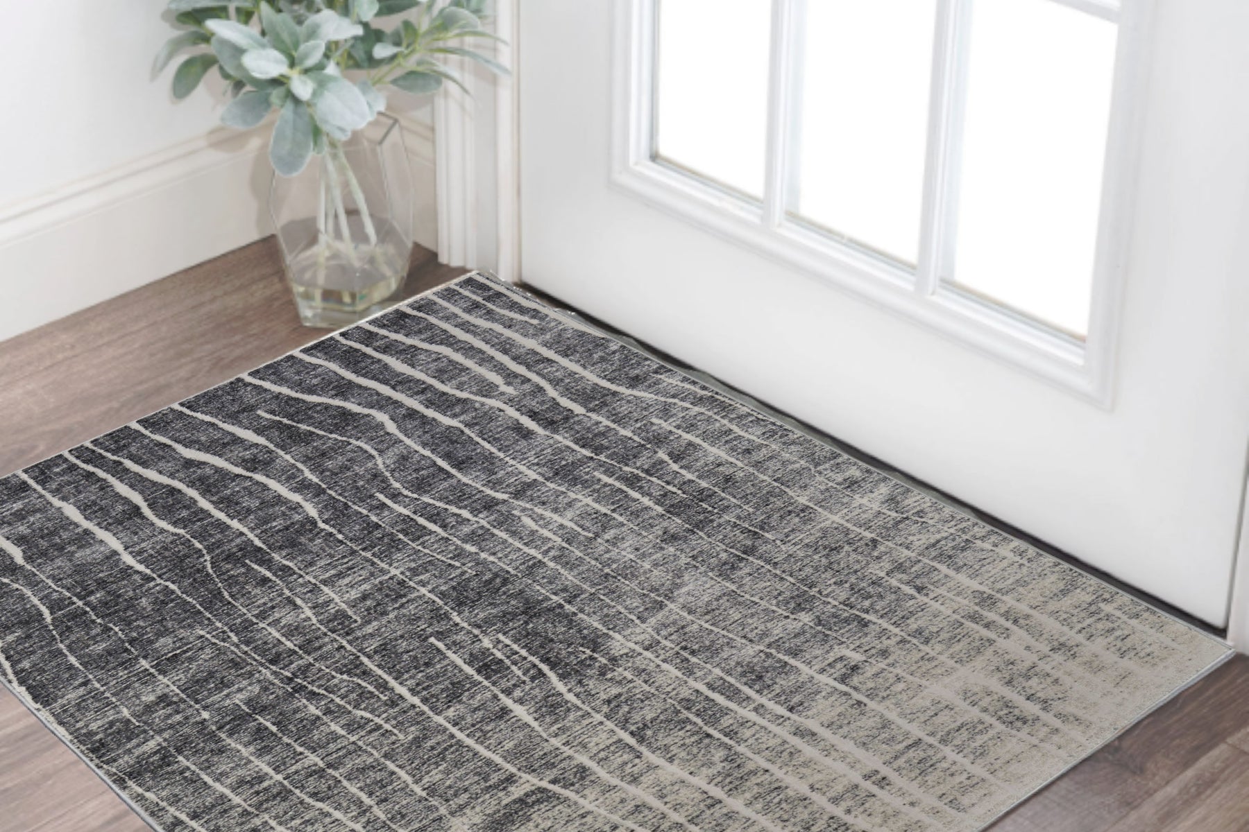 This 2-foot x 3-foot black gray and ivory abstract power loom area rug, is a great way to add warmth to a room. This rectangle shaped rug features a abstract design that will add a functional and decorative accent to your space. Ideal for spaces with kids and pets, this rug is stain resistant to help repel dirt and spilled liquids. This smaller sized rug is just what you need for your walkway, or in front of door, cabinet, refrigerator, or chair. 26-inch h x 36-inch w x 0.41-inch d
