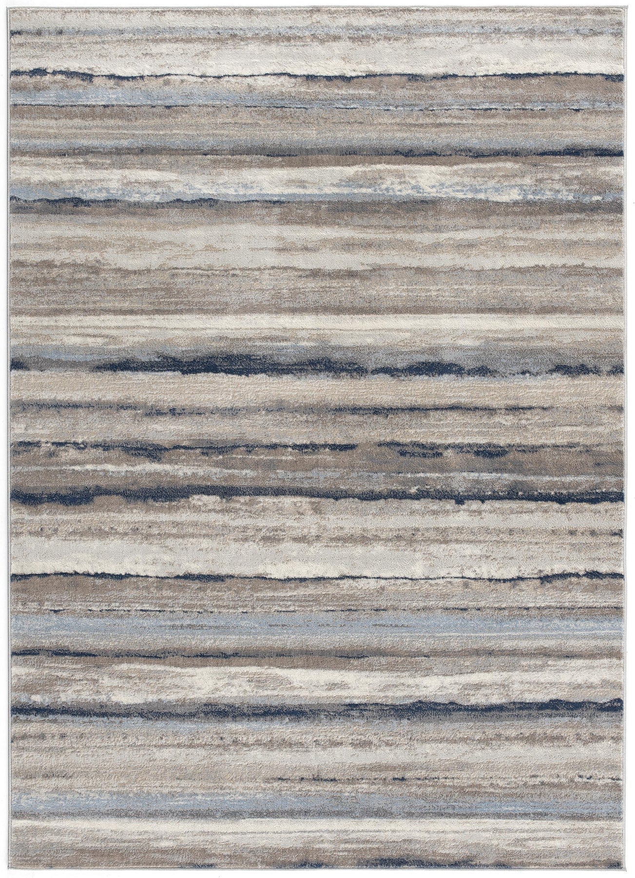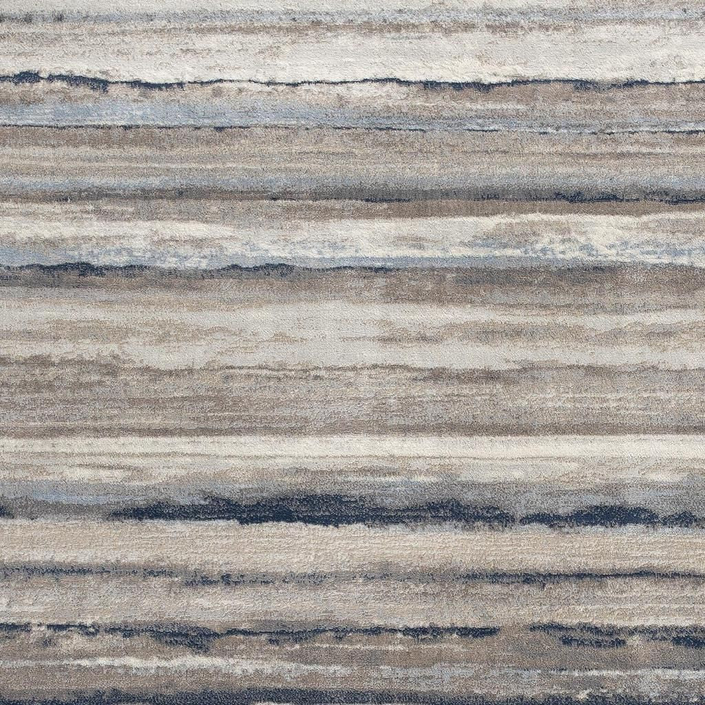 Add some artistry to your room with this 2-foot x 3-foot blue brown and beige striped area rug. Ideal for spaces with kids and pets, this rug is stain resistant to help repel dirt and spilled liquids. Built to last, this rug crafted from polypropylene fibers is known for its durability and long lasting appeal. Rugs are a great way to showcase your style, hide imperfections, warm your home and reduce noise. This smaller sized, contemporary styled rug is just what you need for your walkway, bedside, in front of door, cabinet, refrigerator, or chair. 27-inch h x 36-inch w x 0.4-inch d.