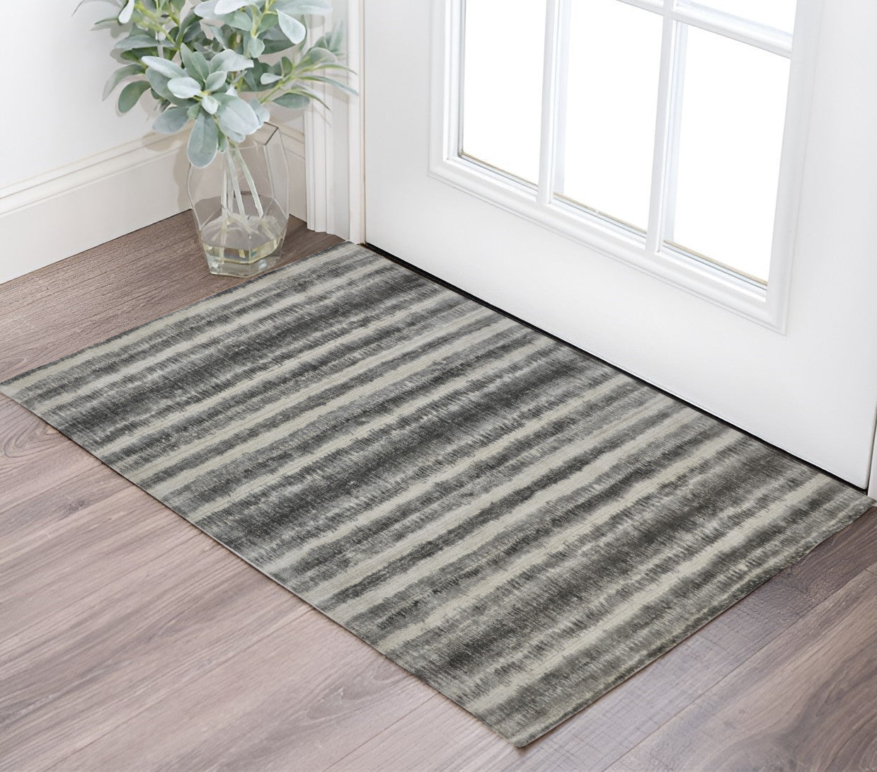 Add some artistry to your room with this 2-foot x 3-foot gray and black abstract hand woven area rug. This rectangle shaped rug features a abstract design in gray and black to give it visual interest. A classic shape marries with good looking design for your space crafted by skilled artisans, this hand woven rug is genuine and unique. No two will be exactly alike. 24-inch H x 36-inch W x 0.4-inch D