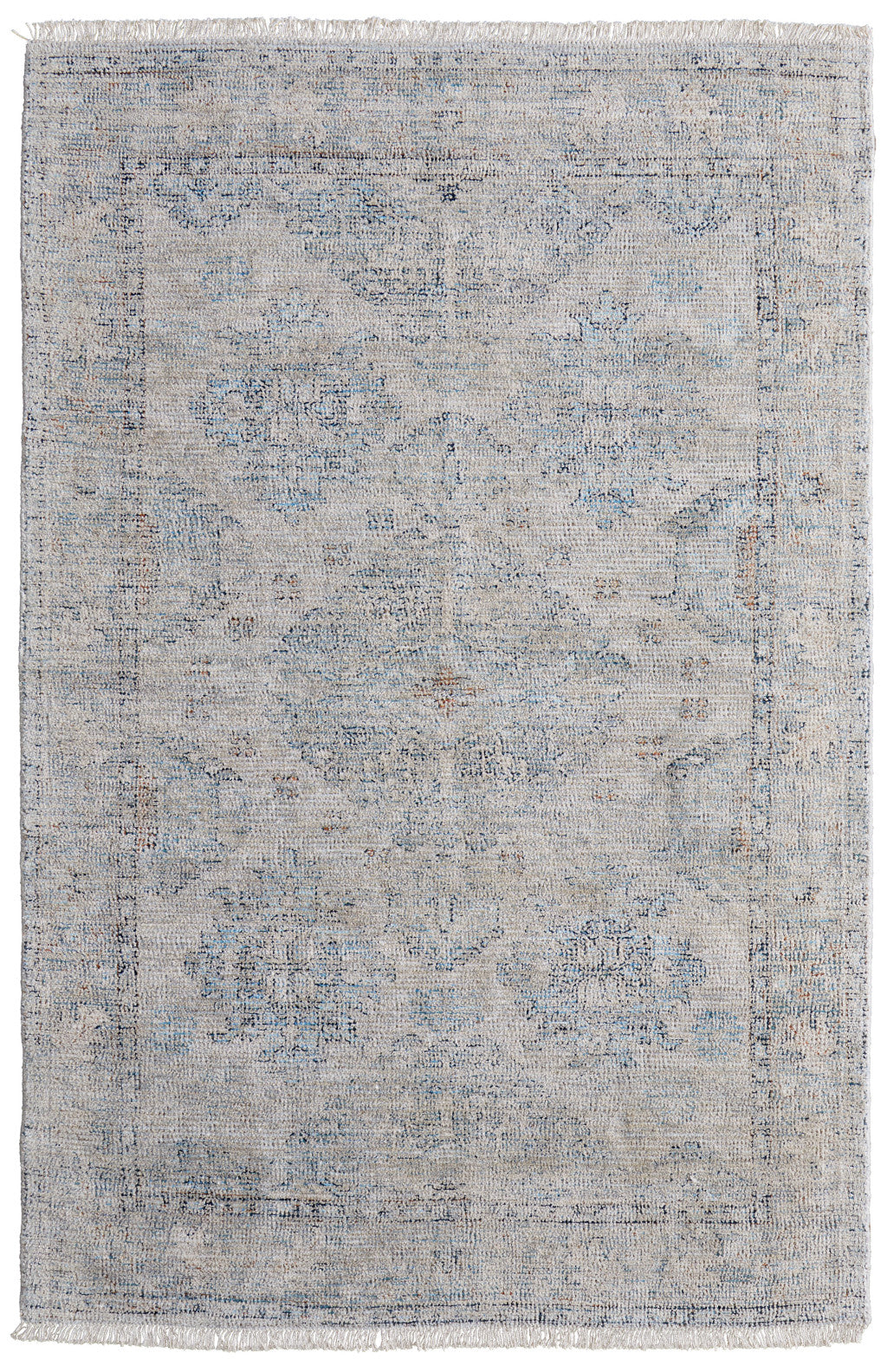Set an inviting tone in your space with this 2-foot x 3-foot gray blue and taupe oriental hand woven distressed area rug with fringe. This rectangle shaped rug features a oriental design in gray blue and taupe to give it visual interest. A classic shape marries with good looking design for your space tassel ends bring a timeless and fashionable look to your interior. Crafted by skilled artisans, this hand woven rug is genuine and unique. No two will be exactly alike. 24-inch H x 36-inch W x 0.4-inch D