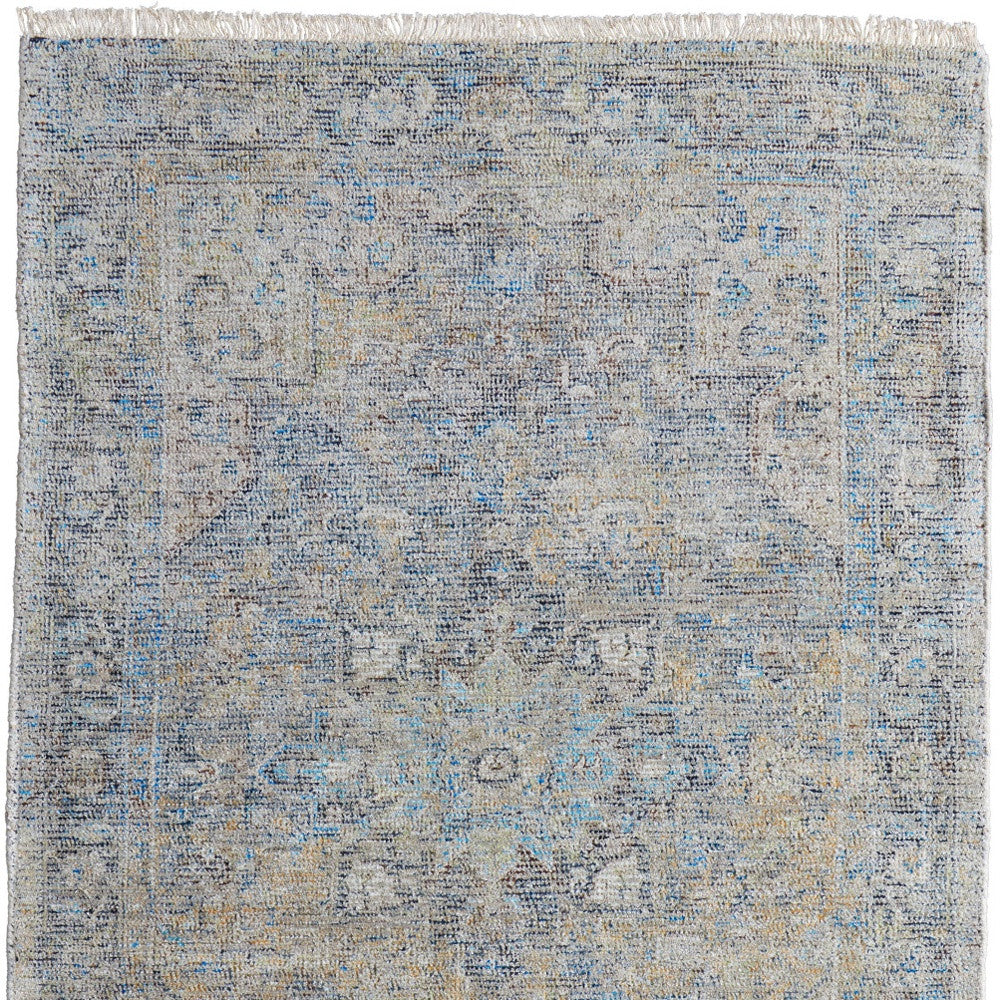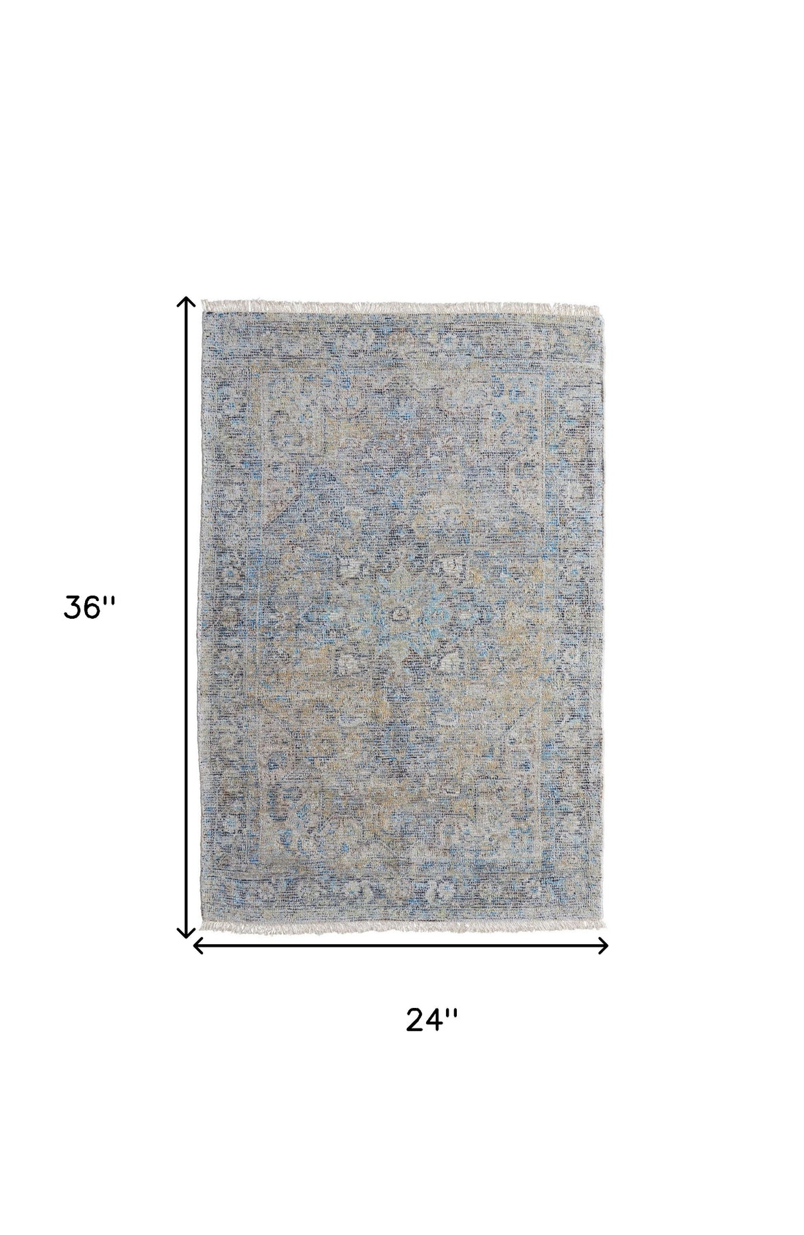 Add some artistry to your room with this 2-foot x 3-foot gray blue and tan abstract hand woven distressed area rug with fringe. This rectangle shaped rug features a abstract design in gray blue and tan to give it visual interest. A classic shape marries with good looking design for your space tassel ends bring a timeless and fashionable look to your interior. Crafted by skilled artisans, this hand woven rug is genuine and unique. No two will be exactly alike. 24-inch H x 36-inch W x 0.4-inch D
