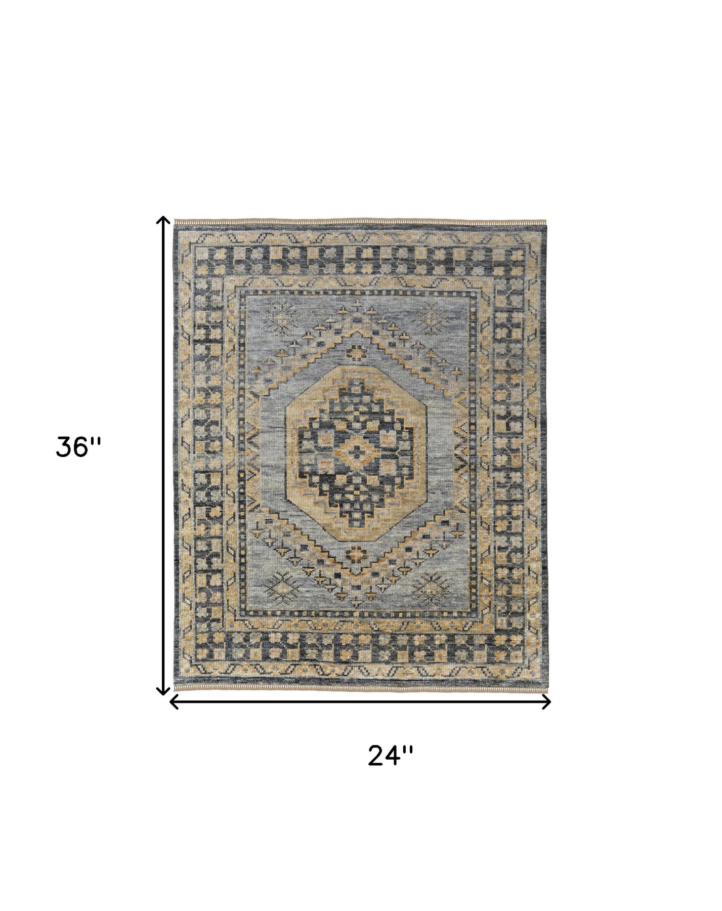 Add great coloration and comfortable texture to your space with this 2-foot x 3-foot blue gray and tan wool oriental hand knotted area rug with fringe. This rectangle shaped rug features a oriental design in blue gray and tan to give it visual interest. A classic shape marries with good looking design for your space ideal for spaces with kids and pets, this rug is stain resistant to help repel stains and spilled liquids. Tassel ends bring a timeless and fashionable look to your interior. Crafted by skilled artisans, this hand knotted rug is genuine and unique. No two will be exactly alike. Area rugs help to give warmth and sense of home to your space. 24-inch H x 36-inch W x 0.4-inch D
