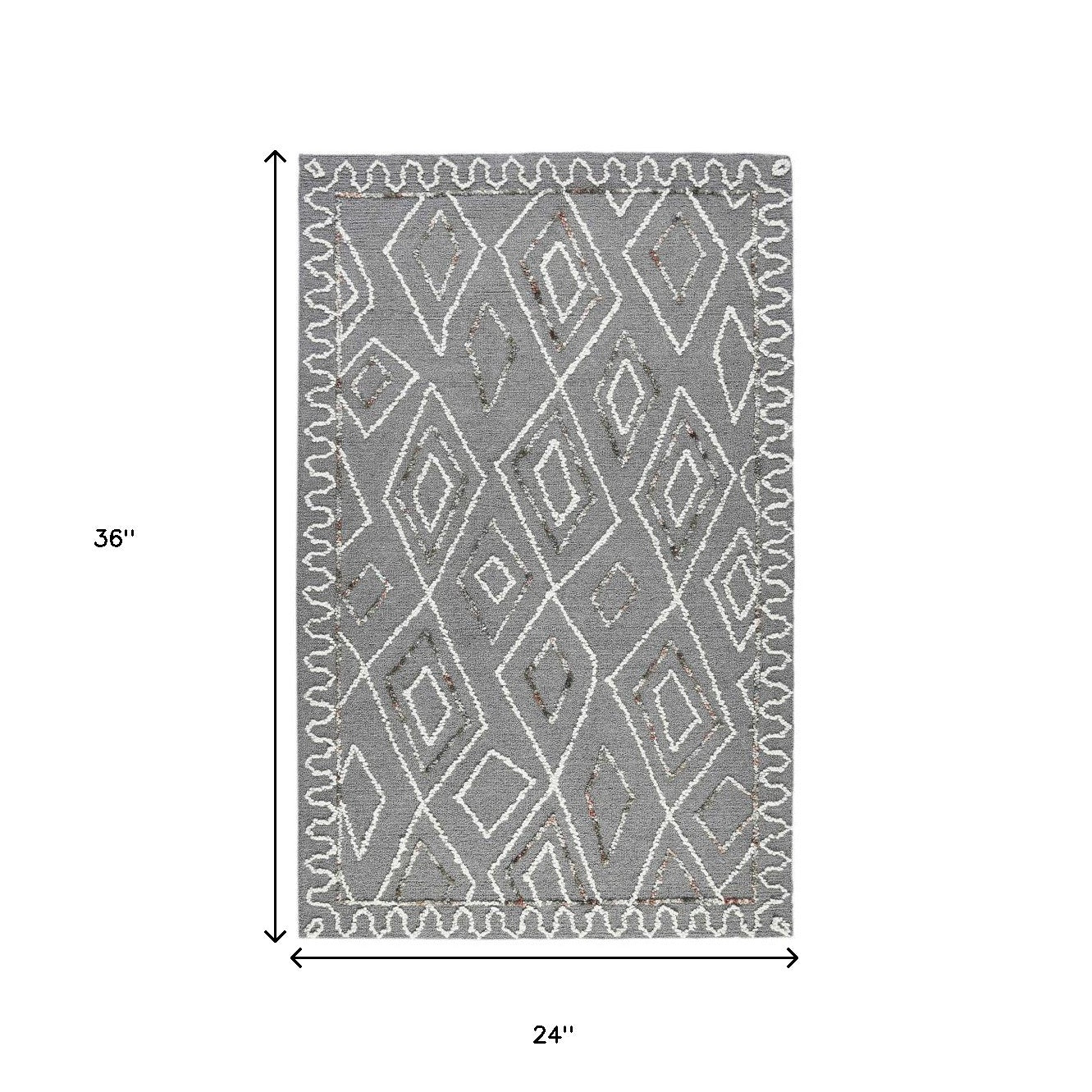 This 2-foot x 3-foot dark gray ivory and rust wool geometric hand hooked area rug, is a great way to add warmth to a room. Crafted by skilled artisans, this hand hooked rug is genuine and unique. No two will be exactly alike. Rugs are a great way to showcase your style, hide imperfections, warm your home and reduce noise. This smaller sized, lodge styled rug is just what you need for your walkway, bedside, in front of door, cabinet, refrigerator, or chair. 24-inch h x 36-inch w x 0.4-inch d.