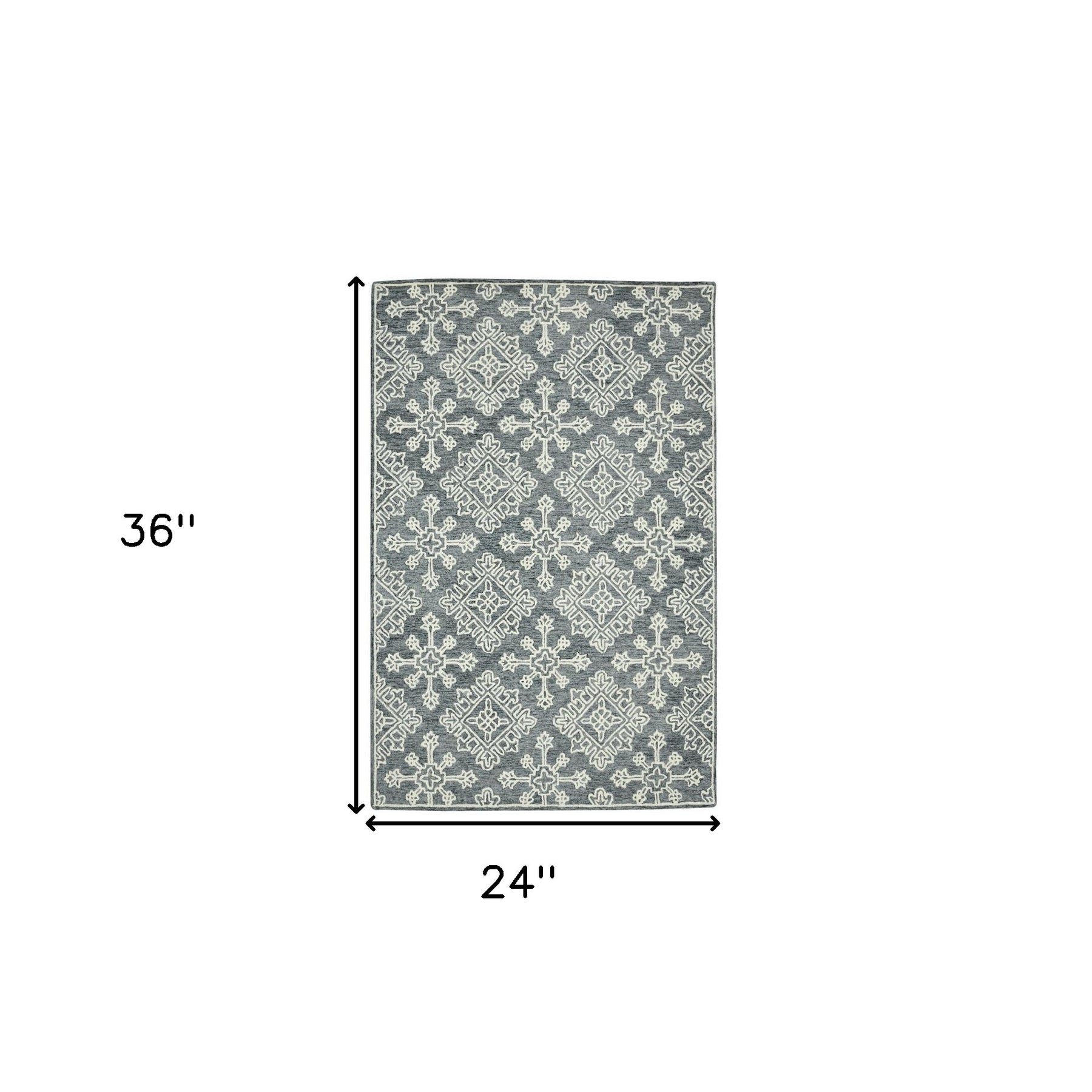 Add great coloration and comfortable texture to your space with this 2-foot x 3-foot dark gray and ivory wool oriental hand hooked area rug. Crafted by skilled artisans, this hand hooked rug is genuine and unique. No two will be exactly alike. Rugs are a great way to showcase your style, hide imperfections, warm your home and reduce noise. This smaller sized, transitional styled rug is just what you need for your walkway, bedside, in front of door, cabinet, refrigerator, or chair. 24-inch h x 36-inch w x 0.4-inch d.