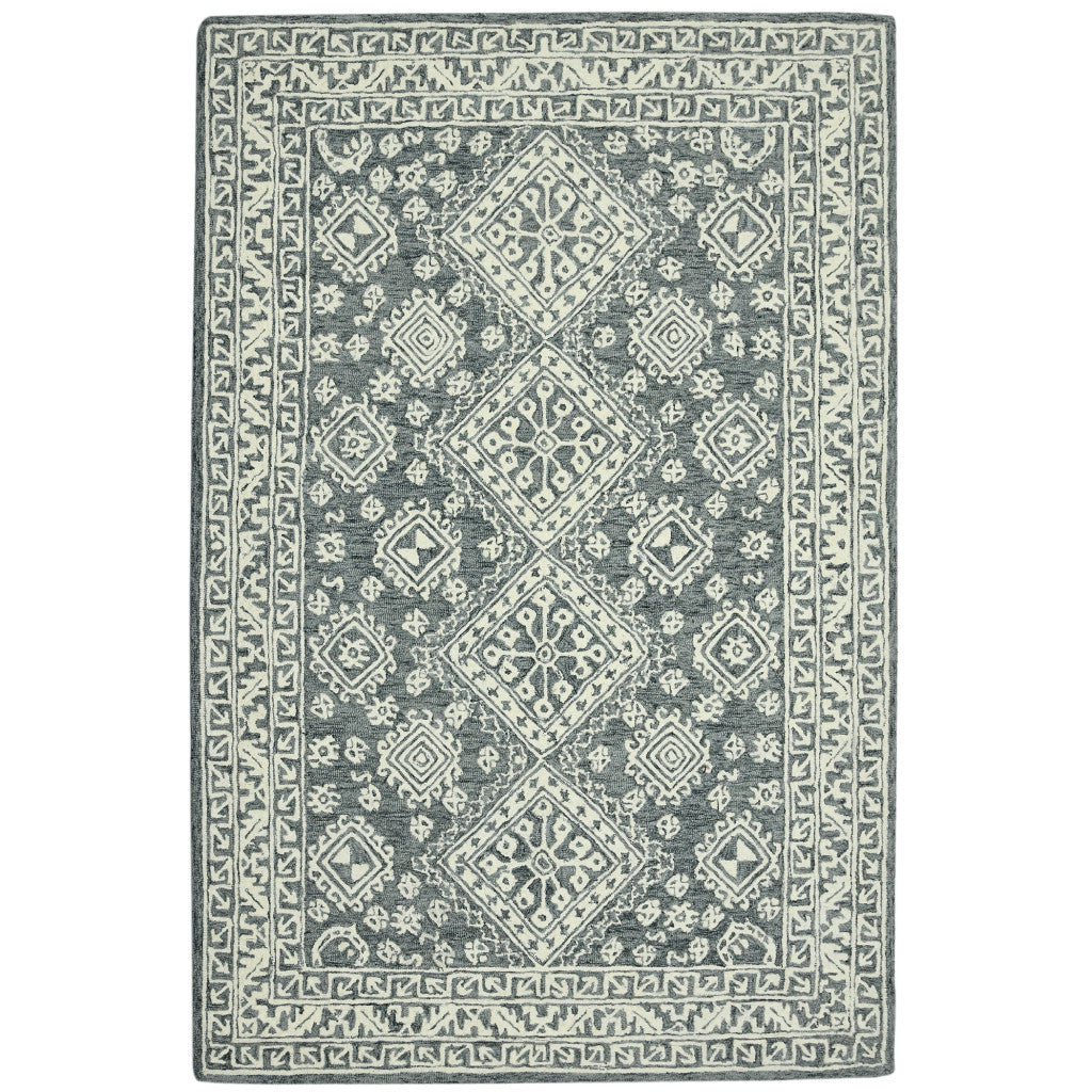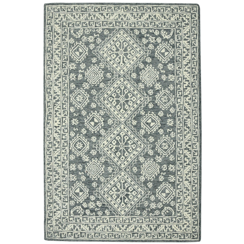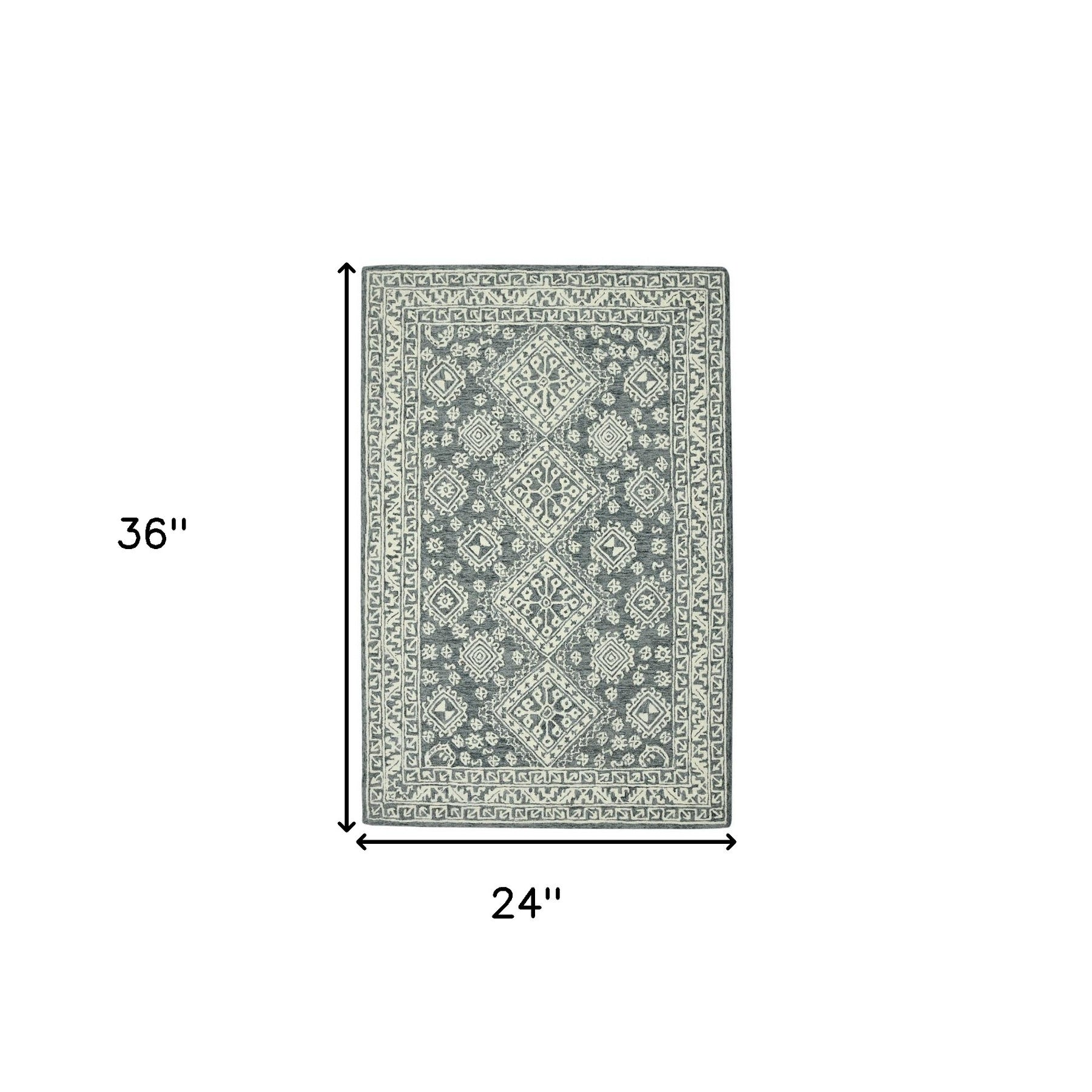 This 2-foot x 3-foot slate gray and ivory wool oriental hand hooked area rug, is a great way to add warmth to a room. Crafted by skilled artisans, this hand hooked rug is genuine and unique. No two will be exactly alike. Rugs are a great way to showcase your style, hide imperfections, warm your home and reduce noise. This smaller sized, transitional styled rug is just what you need for your walkway, bedside, in front of door, cabinet, refrigerator, or chair. 24-inch h x 36-inch w x 0.4-inch d.