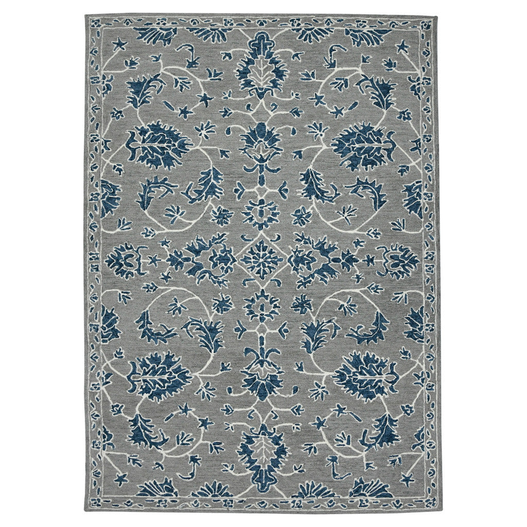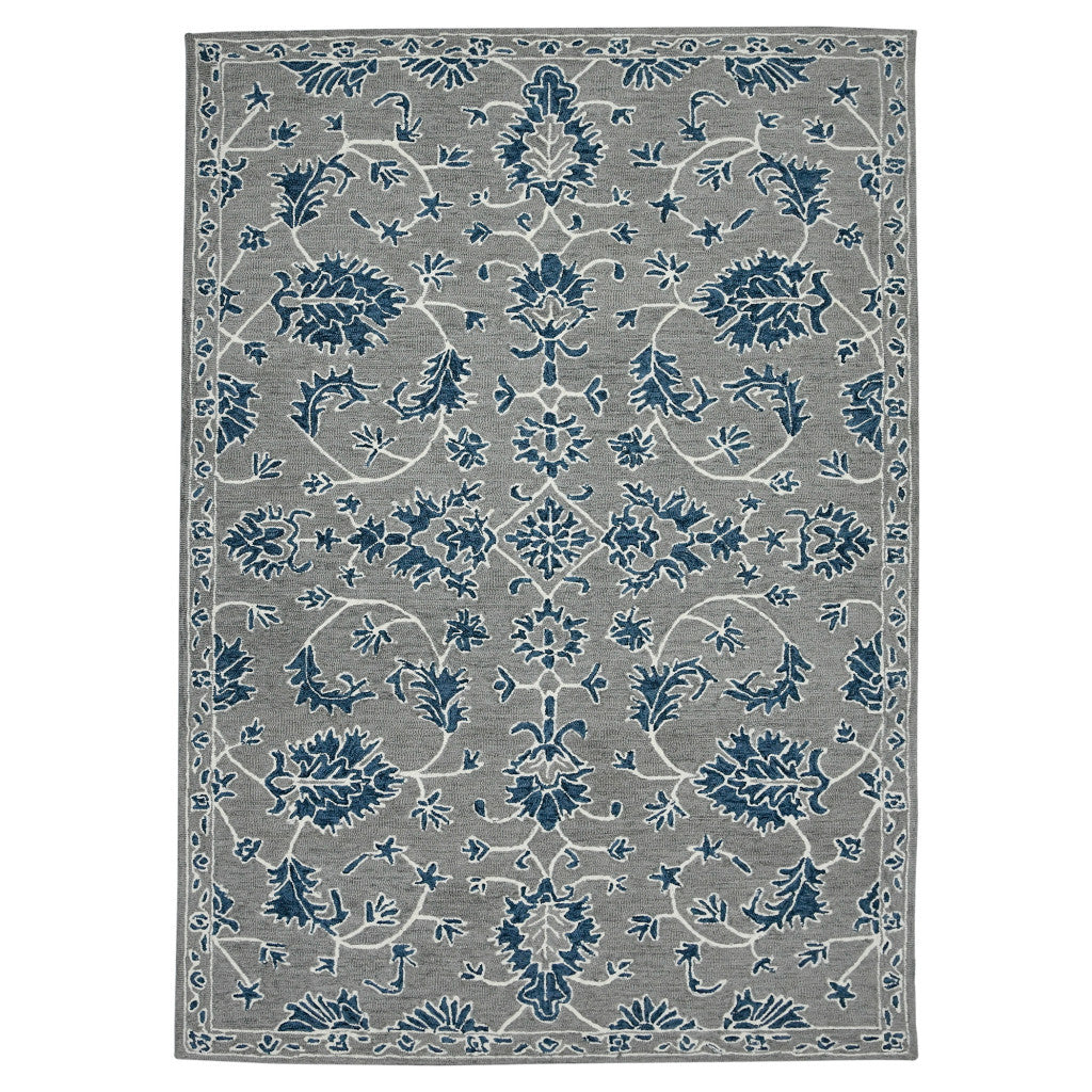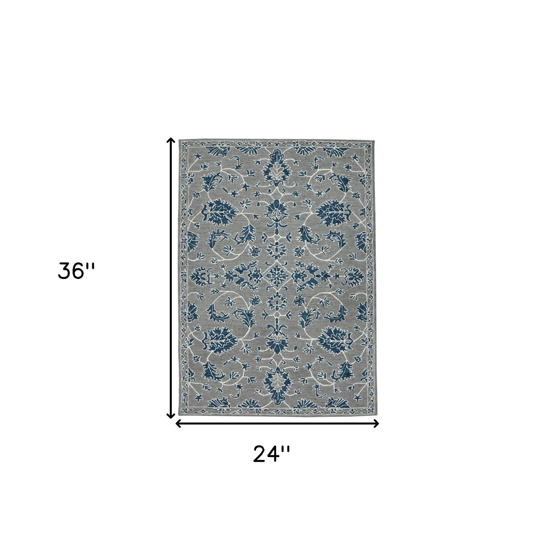 This 2-foot x 3-foot gray blue and ivory wool floral medallion hand hooked area rug, is a great way to add warmth to a room. Crafted by skilled artisans, this hand hooked rug is genuine and unique. No two will be exactly alike. Rugs are a great way to showcase your style, hide imperfections, warm your home and reduce noise. This smaller sized, traditional styled rug is just what you need for your walkway, bedside, in front of door, cabinet, refrigerator, or chair. 24-inch h x 36-inch w x 0.4-inch d.