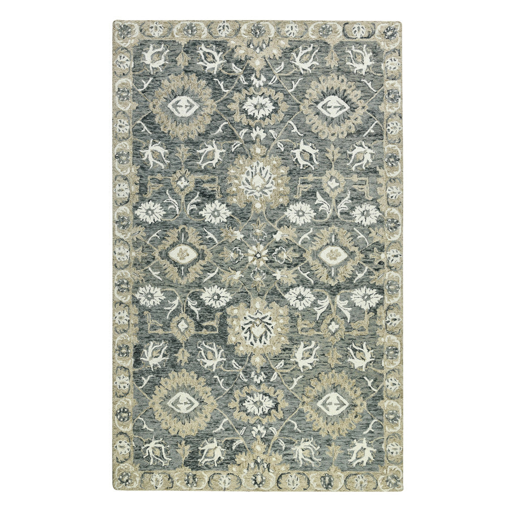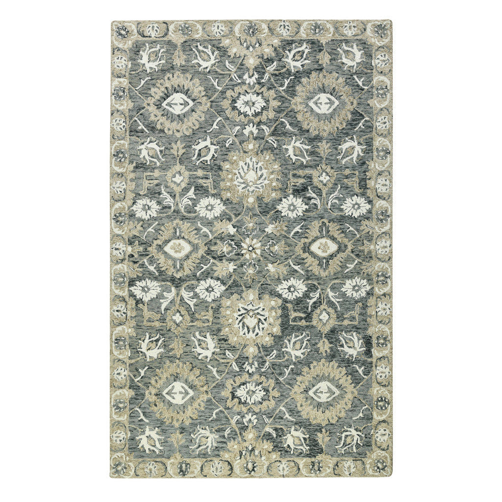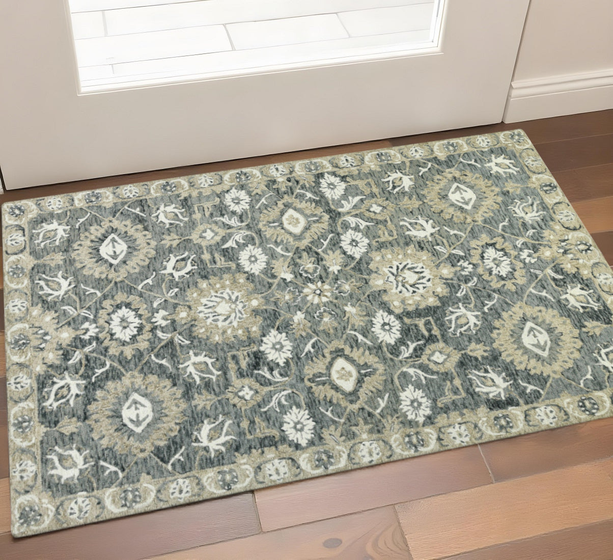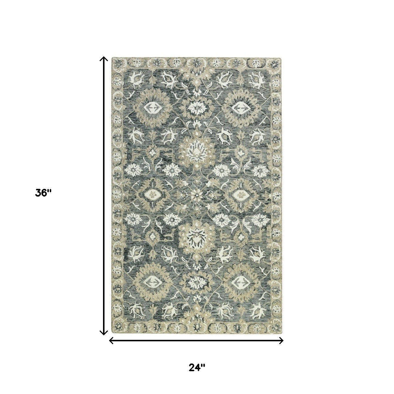 Add great coloration and comfortable texture to your space with this 2-foot x 3-foot gray ivory and beige wool floral medallion hand hooked area rug. Crafted by skilled artisans, this hand hooked rug is genuine and unique. No two will be exactly alike. Rugs are a great way to showcase your style, hide imperfections, warm your home and reduce noise. This smaller sized, traditional styled rug is just what you need for your walkway, bedside, in front of door, cabinet, refrigerator, or chair. 24-inch h x 36-inch w x 0.4-inch d.
