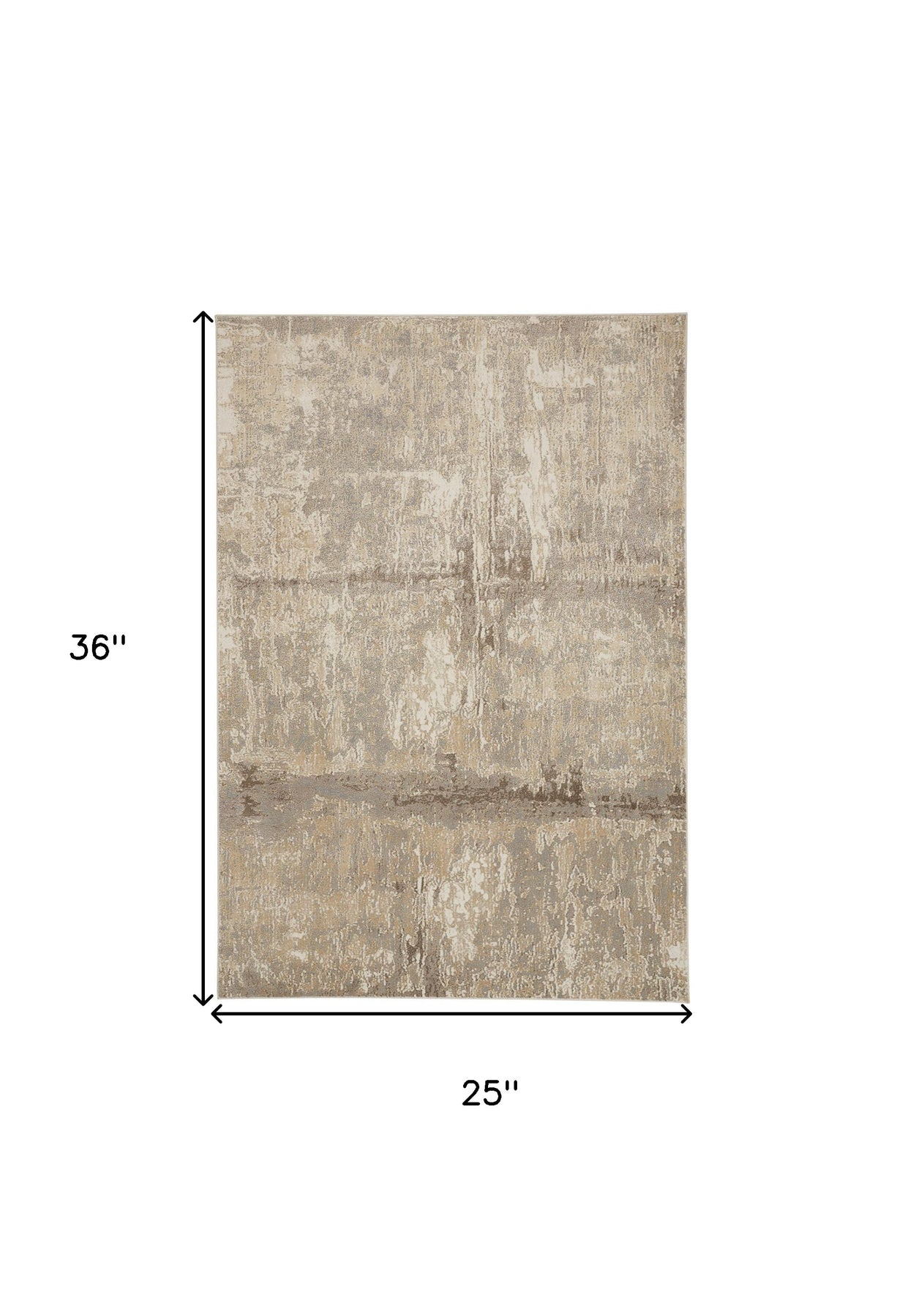 This 2' x 3' tan ivory and brown abstract area rug, is a great way to add warmth to a room. This rectangle shaped rug features a abstract design in tan ivory and brown to give it visual interest. A classic shape marries with good looking design for your space Made in Turkey, this rug offers high quality combined with good looking designer sensibilities. Place this area rug against a hardwood or tile floor and it will enliven your living space with style and sophistication. 0.39" H x 25" W x 36" D