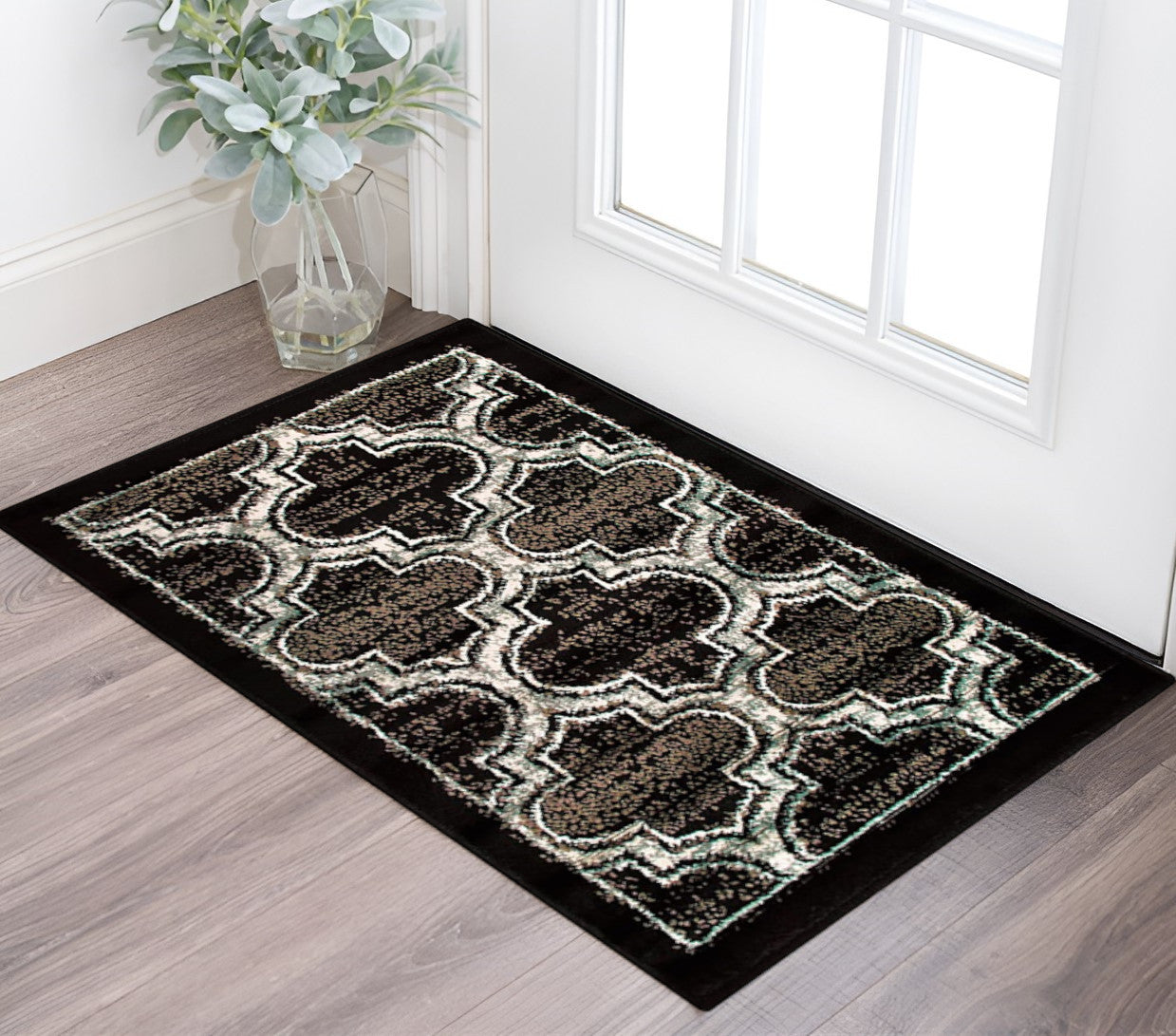Set an inviting tone in your space with this 2' x 3' black geometric stain resistant area rug. This rectangle shaped rug features a geometric design in black to give it visual interest. A classic shape marries with good looking design for your space The coloration of this rug infuses an updated and modern vibe into your space. Ideal for spaces with kids and pets, this rug is stain resistant to help repel stains and spilled liquids. Area Rugs help to give warmth and sense of home to your space. 0.39" H x 24" W x 36" D