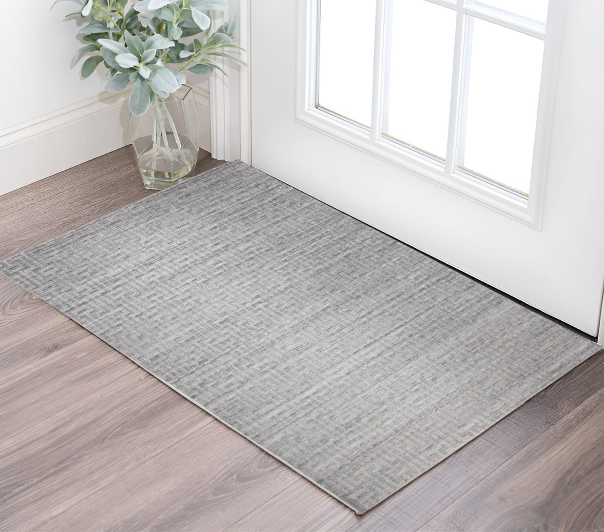 This 2' x 3' silver floral hand woven area rug, is a great way to add warmth to a room. This rectangle shaped rug features a floral design in silver to give it visual interest. A classic shape marries with good looking design for your space Crafted by skilled artisans, this hand woven rug is genuine and unique. No two will be exactly alike. Area Rugs help to give warmth and sense of home to your space. 0.39" H x 24" W x 36" D