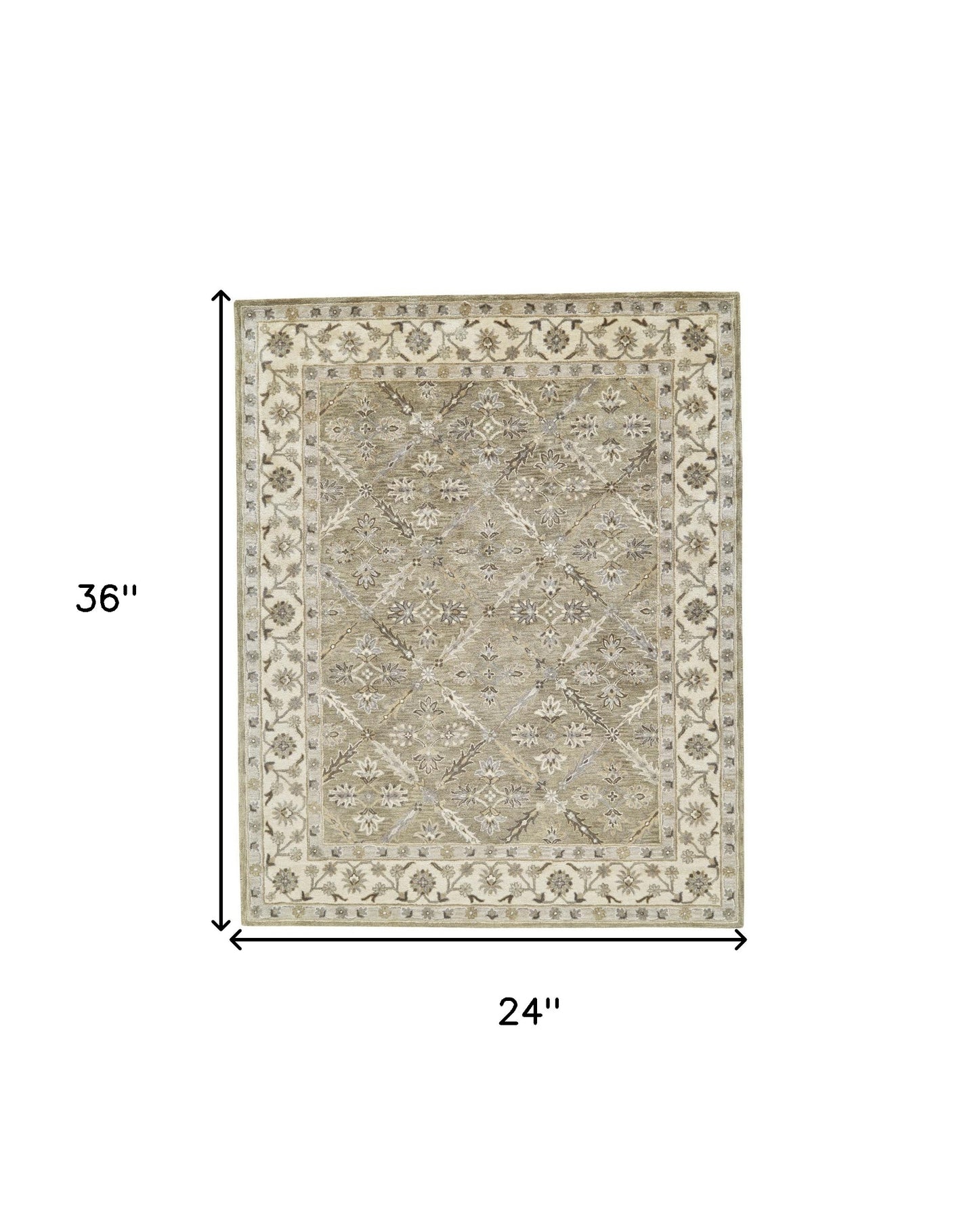 This 2' x 3' green brown and taupe wool paisley tufted handmade stain resistant area rug, is a great way to add warmth to a room. This rectangle shaped rug features a paisley design in green brown and taupe to give it visual interest. A classic shape marries with good looking design for your space Ideal for spaces with kids and pets, this rug is stain resistant to help repel stains and spilled liquids. Place this area rug against a hardwood or tile floor and it will enliven your living space with style and sophistication. 0.39" H x 24" W x 36" D